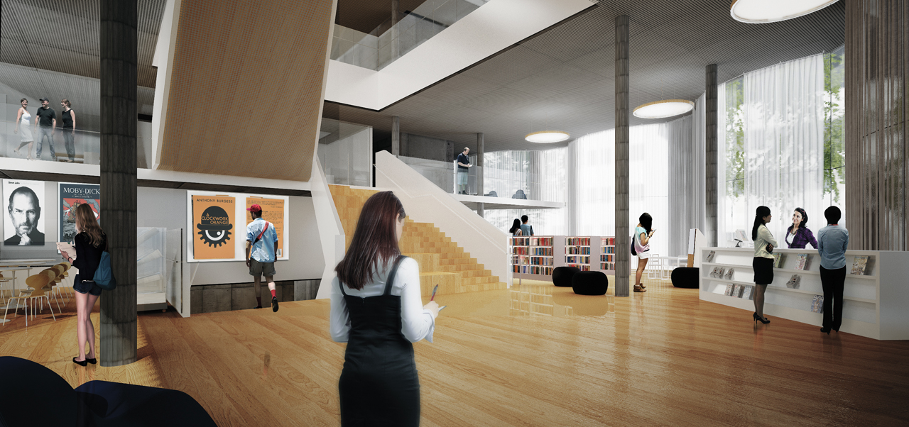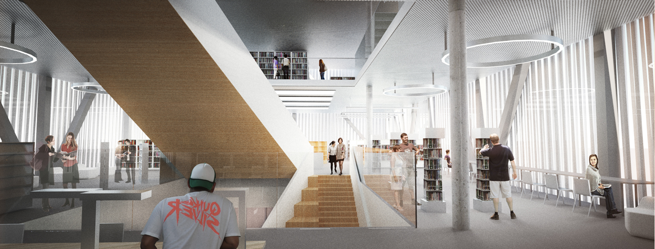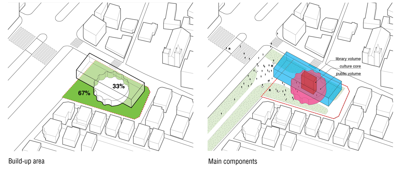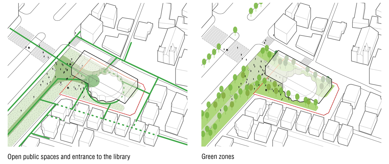 Not long ago the library was thought of as a huge archive, a storage of human knowledge. This idea was particularly expressed in design of the building. Static, monolithic and ponderous, often impressive in size, the building looked like a mausoleum or a fortress keeping safe the human culture accumulated throughout the centuries. Now the idea of the library is different. All human knowledge is just information that after being digitalized can fit into the pocket. Therefore there is no sense in producing more containers for products of culture. What the library building should express is accessibility of information and etherealization of knowledge. Also the concept of information (being shared) is wider than the concept of knowledge (being rather stored than shared), which means the space and activities in the library should become significantly more diverse.