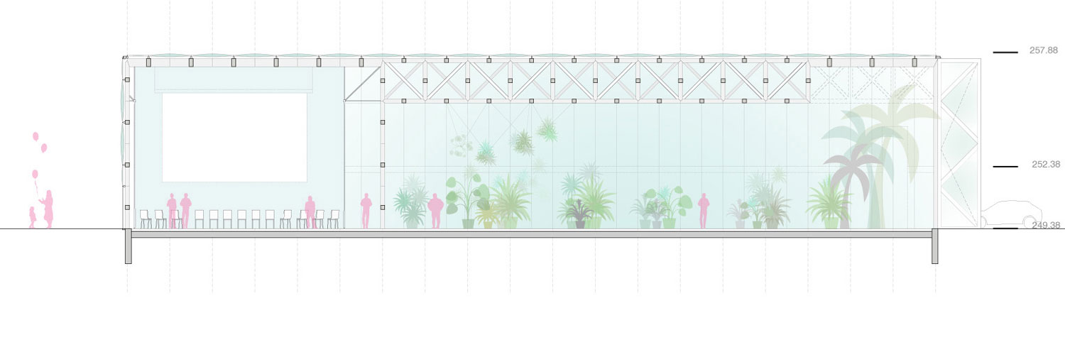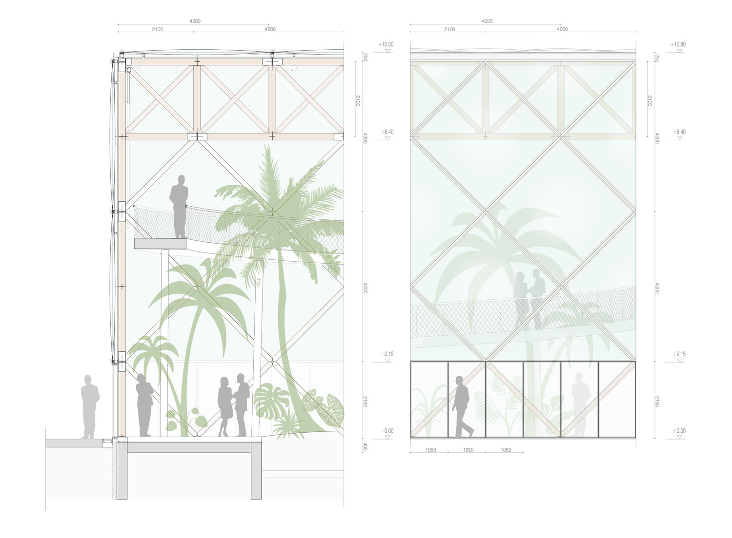 Architecture, structure, technical installations, landscaping and exhibits form an integrated system with a shared purpose: to abstractly and artificially emulate natural environments in greenhouses, and to synthesise those settings or ecosystems and their conditions in terms of space and time, but also of material and energy, adapting to the container’s limitations of scale. The goal is to offer audiences a comprehensive tour that will translate into a wide variety of memorable experiences: architectural and landscape experiences, thematic and exhibition experiences, even biological and life experiences.