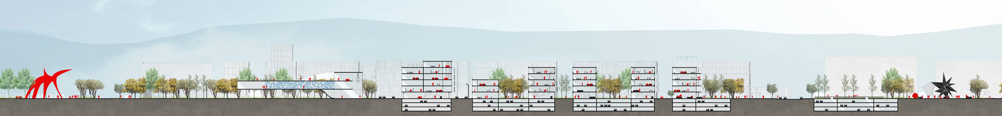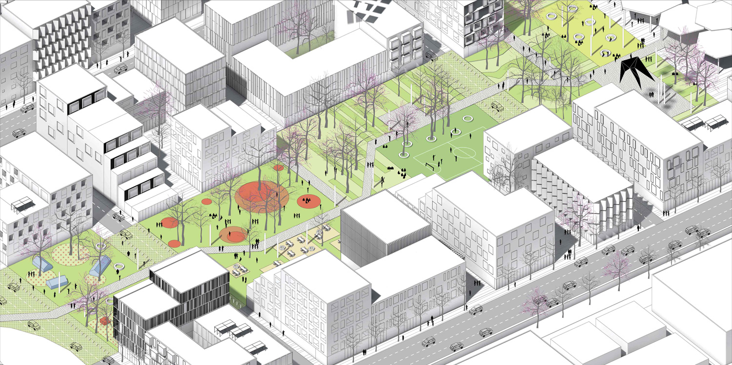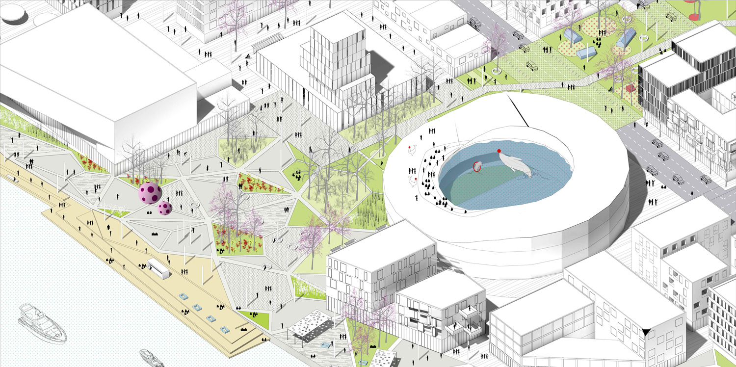 The concept of «DELTA + a dynamic city» is based on the ambition to think the city by the public space. The public space carries a daily introduction to common life and induced spaces that shape a common identity. It is the success of these public spaces which will create a rich running between buildings. This public space is developed by an urban path which becomes the support of different activities. This diversity offers a flexible use of temporality and corresponding to people of all ages. The mixity of different type of public spaces create a new way to appreciate the city. People of all ages meet, there are no zoning but a heterogeneity unified by the pathway. It is the existing, and the new, environment that will draw the future buildings. This concept provides flexibility in the use and respect of the context. The ambition of DELTA+ is to create consistency between the existing way of living and the new development way by reinterpreting the blocs. The idea is to maintain an identity of the city while creating support corresponding to contemporary expectations. In order to make a homogeneous base, it’s important to create a connection with the existing. The implementation of the project takes into account the directions already set up in the city to create a urban continuity, an echo between interventions. Moreover, different scale of mobility are necessary for the city of tomorrow by allowing everyone to adopt a means of transport adapted to their needs. Various entry and exits are provided on the site to properly serve the project. It’s also important to think about the vegetation in the city. But not only just like a basic ornamentation.