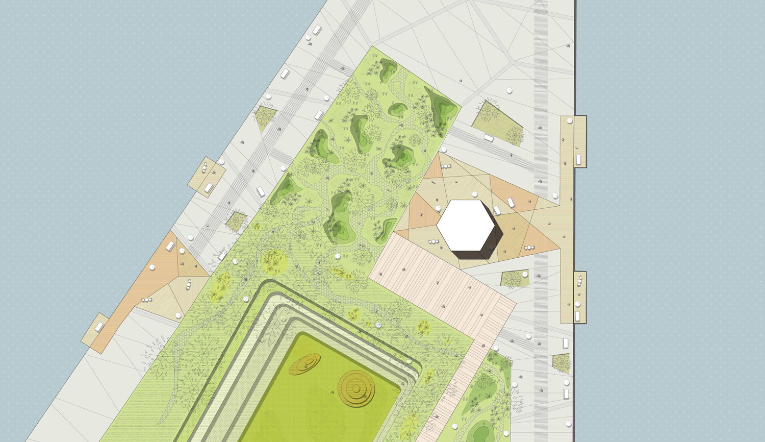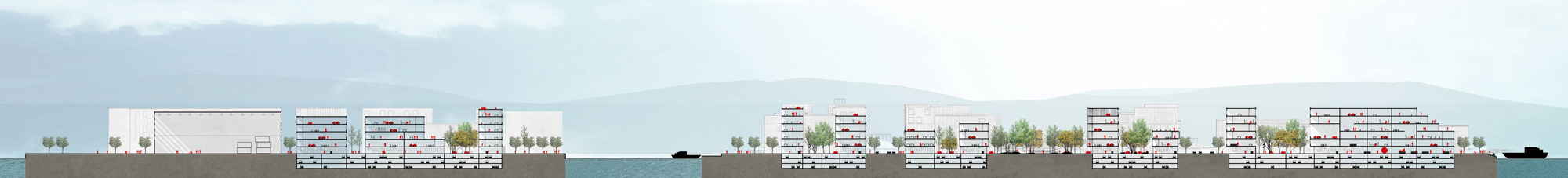 The vegetation is a material for the construction of the city. Delta + restores a hierarchy in the urban plan by putting it at the heart of the development in the continuity of the existing vegetation, the new public park and the heart of the Delta. This conscious about vegetation creates a daily social contribution for everyone. The new park offers a quality of life in the heart of the plot for those who do not have a direct view to the sea. No housing are abandoned, the area of Delta + functions to promote natural contribution offered by the city. The park creates a dynamic and multi-generational public space. This item becomes a central feature of the city by providing required activities to everyone’s health and a life of active area. The waterfront become a continuous promenade connecting the different areas of Delta + and the historic city. Rijeka is a city where the confrontation with the water is very important. That is why it is necessary to give a new way to approach it by offering innovative and spaces available to develop this asset. This new public space must be linked with the public spaces of the already existing city. That’s why the introduction of continuous paths with strategic points permit to connect the different part of the city to create an element working together.