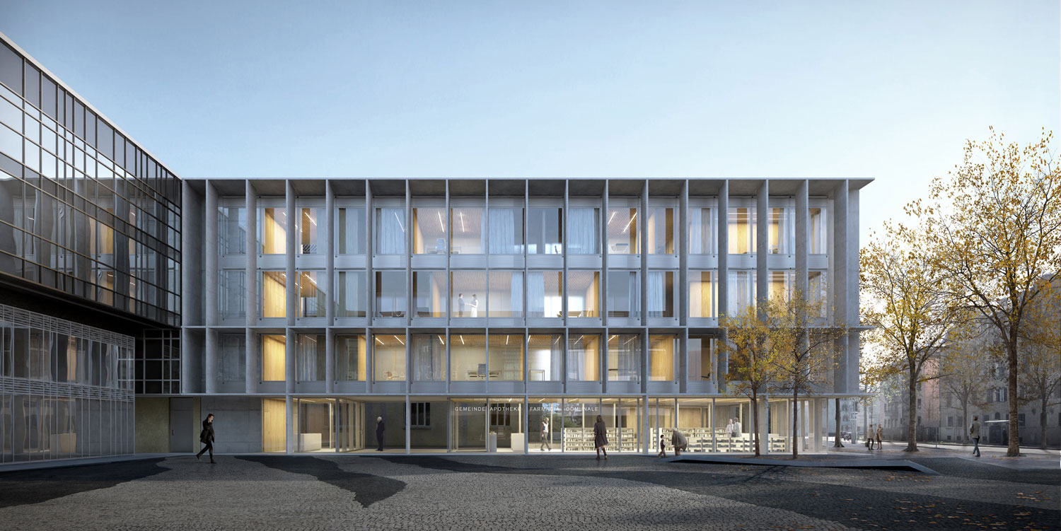 L’edificio per il nuovo distretto socio-sanitario completa la piazza e l’insieme degl’edifici pubblici che definiscono il centro del quartiere di Oltrisarco a Bolzano. L’edificio dialoga con gli edifici circostanti, sottolineando alcuni elementi importanti per la configurazione dell’insieme urbano, quali il portico verso la piazza, l’allineamento verso la strada e l’altezza pari a quella degl’edifici esistenti, determinano lo spazio e la conclusione della piazza Nikoletti. L’idea del progetto si fonda sostanzialmente sulla unitarietà di tutti gli spazi e allo stesso tempo sulla diversificazione delle atmosfere proposte attraverso la variazione della profondità dei profili di facciata e dei suoi affacci. Il programma funzionale e il sistema costruttivo sono organizzati secondo una metrica modulare chiara e semplice, che permette di strutturare in modo efficiente e flessibile il funzionamento delle attività e dei servizi. Le facciate vengono trattate con la stessa gerarchia, attraverso un sistema di frangisole verticali che creano ombreggiamento in tutti gli spazi dell’edificio. La variazione di profondità dei profili di facciata verticali, determina un senso di libertà nel rigore generale della proposta.