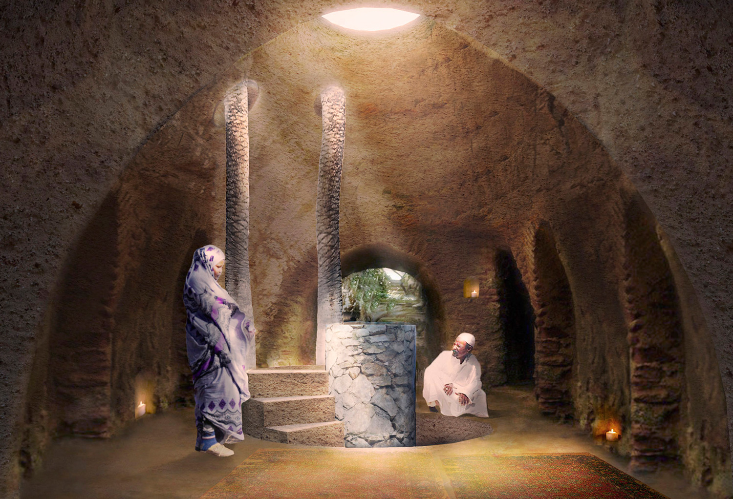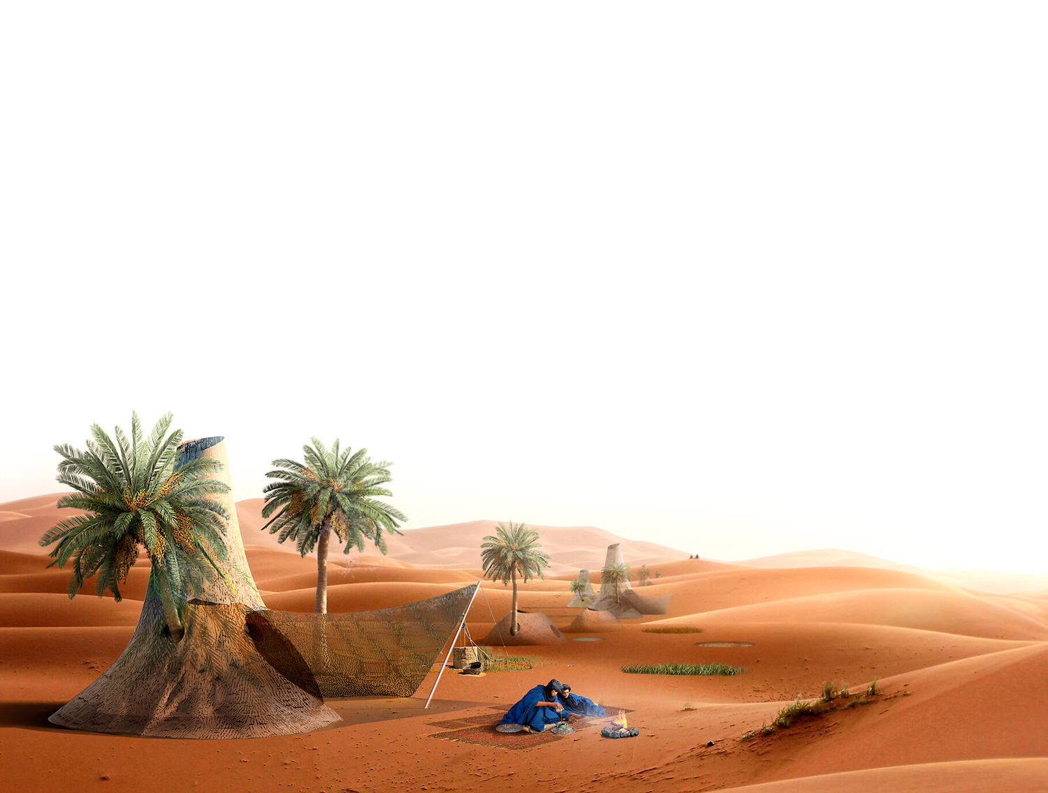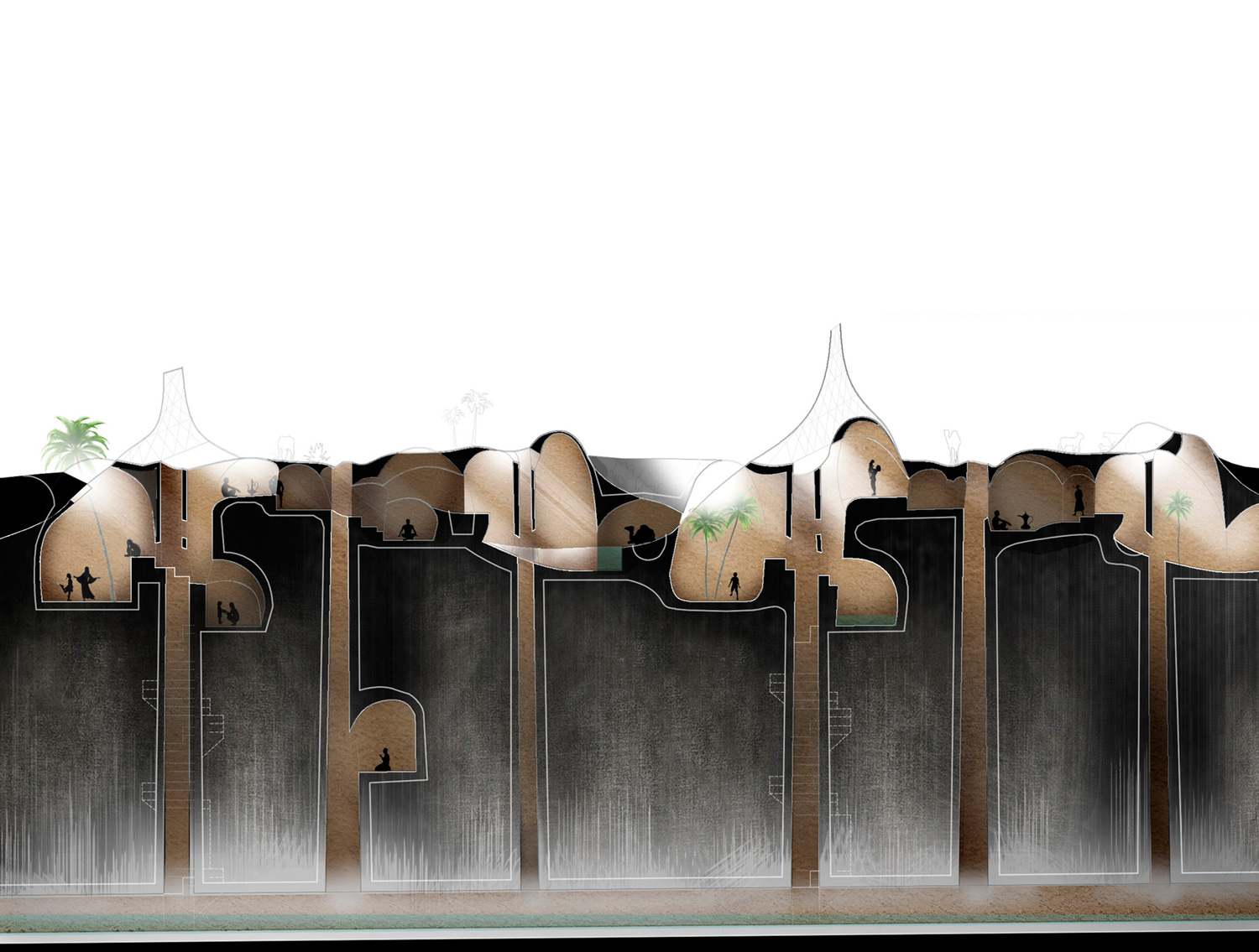 Se propone la reactivación de estas canalizaciones para generar nuevos modos de vida basados en la tradición y materialidad del Sáhara. Las viviendas, refugios que se adentran en el terreno, se apoyan en los pozos subterráneos que le dan soporte, habitabilidad y agua.
