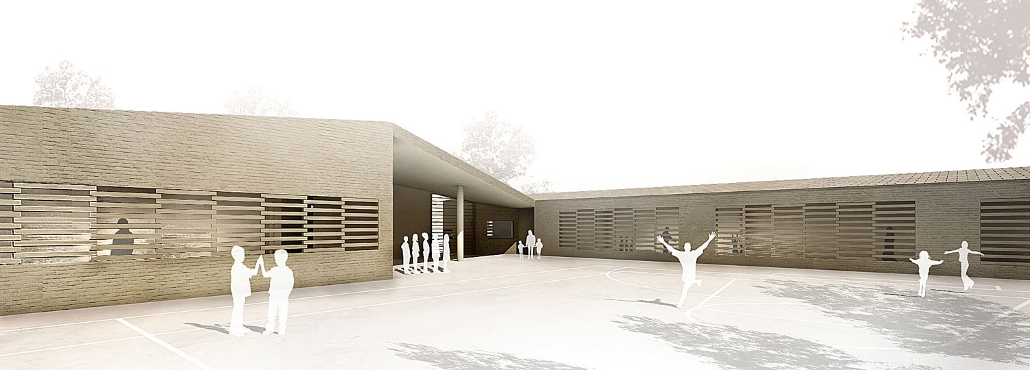 ☉ Escola d’Infantil i Primària a El Poal is a winning proposal by Marti Sanz for GISA designed in 2009. It is located in El Poal Spain in an outskirt setting. Its scale is small with a surface of 972 sqm an estimated budget of 1.259.795 € and a ratio of 1.296 €/sqm. Key material is brick. Play-Time collaborated as visualizer. Concepts such as l shape and courtyard are explored.
