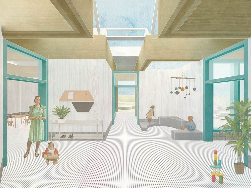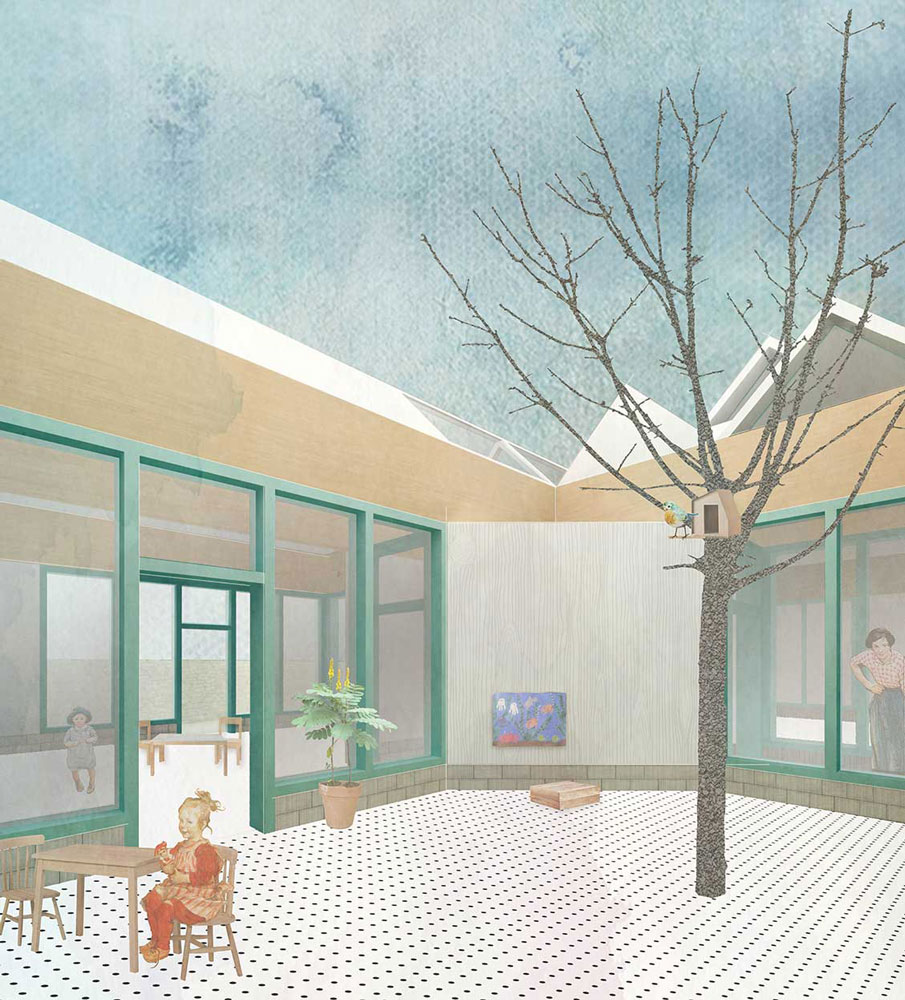 ☉ Escoleta Llubi is a proposal by PYO arquitectos for Ajuntament de Llubi designed in 2017. It is located in Llubi Spain in an urban setting. Its scale is small with a surface of 510 sqm. Key materials are concrete and wood. Concepts such as courtyard modulation sloped roof and zenithal light are explored. Review the 7 proposals for the same competition.