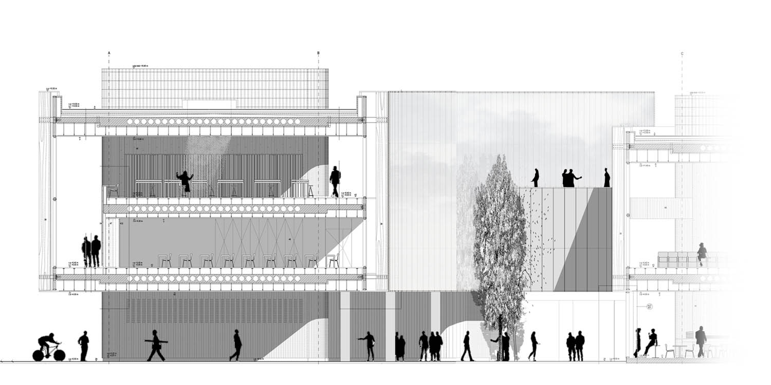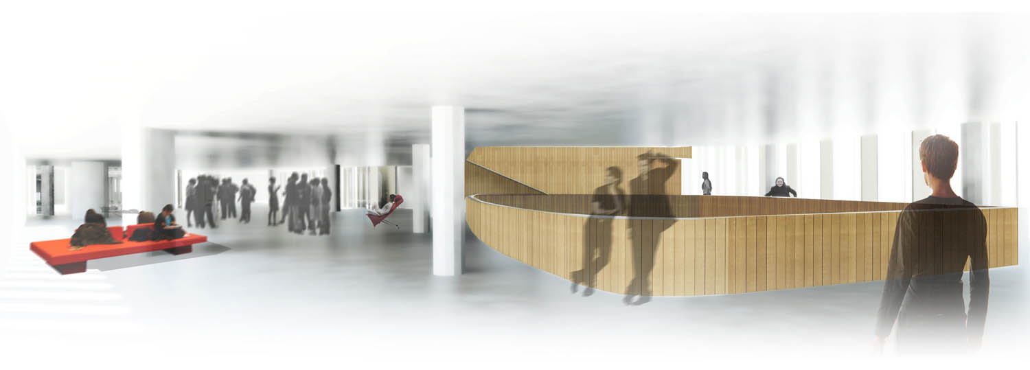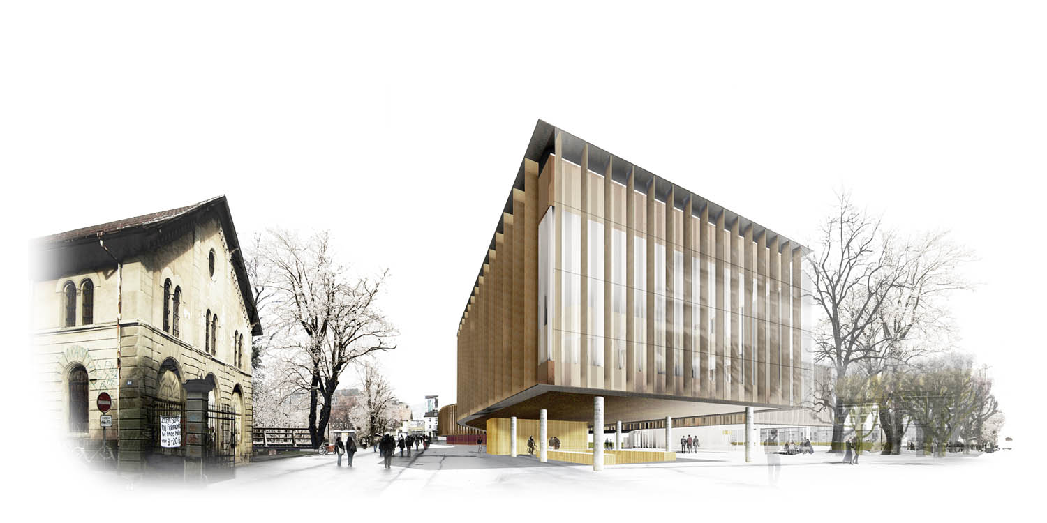 ☉ Escuela de Arquitectura en Zurich is an academic project by Gustavo Vitores for ETSA Barcelona designed in 2010. It is located in Zürich Switzerland in an urban and park setting. Its scale is large. Key materials are glass wood and concrete. Concepts such as stripe and lattice are explored.