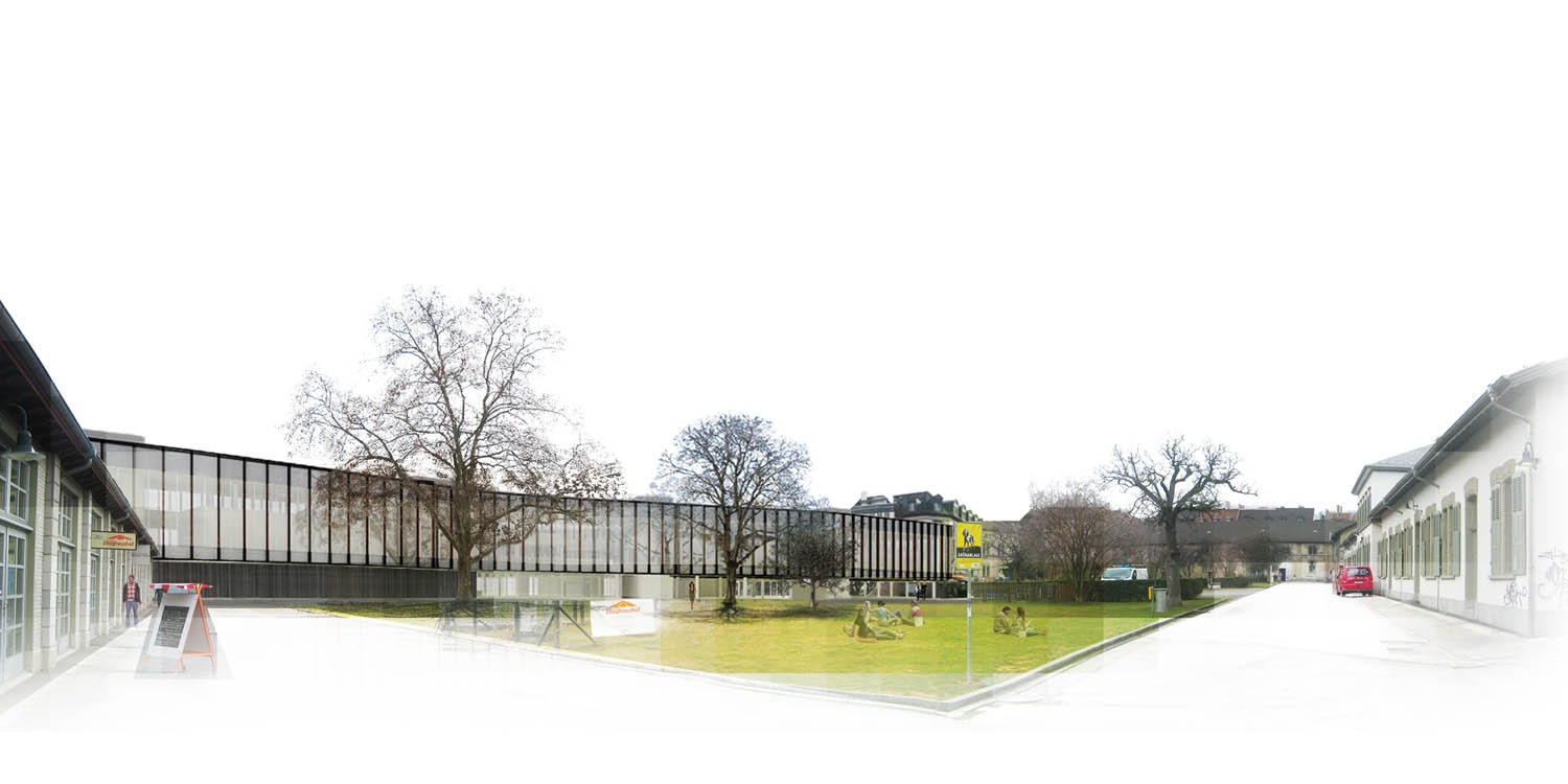 La dirección de las piezas existententes del solar esta marcada desde la orilla opuesta del rio Shil, siendo todas las piezas paralelas a excepción de Zeughausareal que toma la dirección de Rotwandstrasse. Existe un eje de conexión virtual que conecta estas piezas siendo eje de simetria de los edificios de la parte sur (Alte Kaserne), los edificios de la orilla opuesta y la pasarela sobre el rio, y marca uno de los accesos de la parte norte del solar en su lado izquierdo. El uso y la circulación del solar viene condicionado por varios factores: la barrera espacial que supone Zeughausareal y por el pequeño paso intermedio que existe, la barrera urbana que supone la red de ferrocarril al Norte, en la parte Noreste del emplazamiento estála Estación CentralHauptbahnhof, el edifico de correos Sihlpost, y diferentes puntos de uso diario de la ciudad, y el propio distrito Langstrasse que se extiende hacia el Este; hace destacar una senda diagonal en el parque que marca la tendencia circulatoria principal en ese espacio.