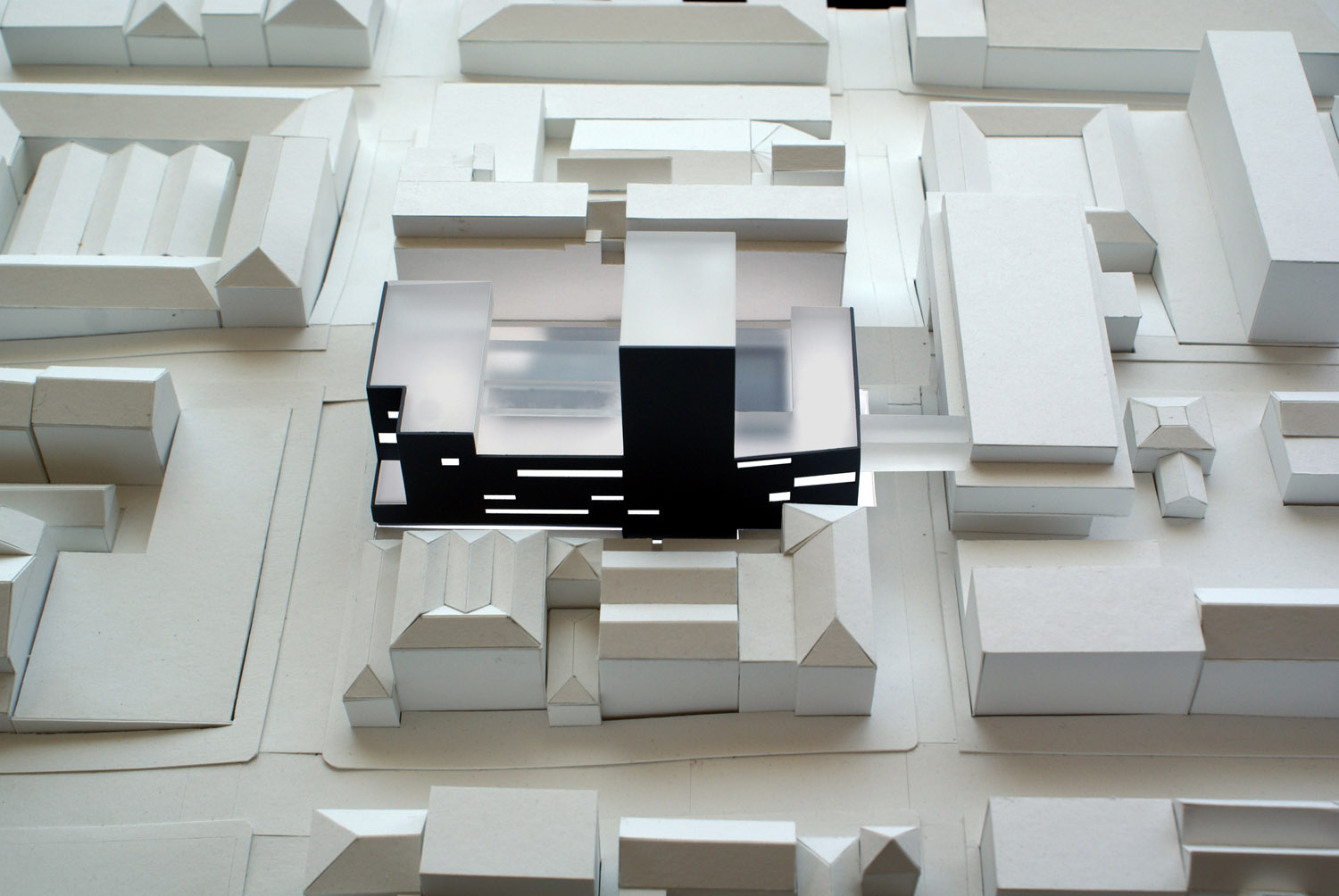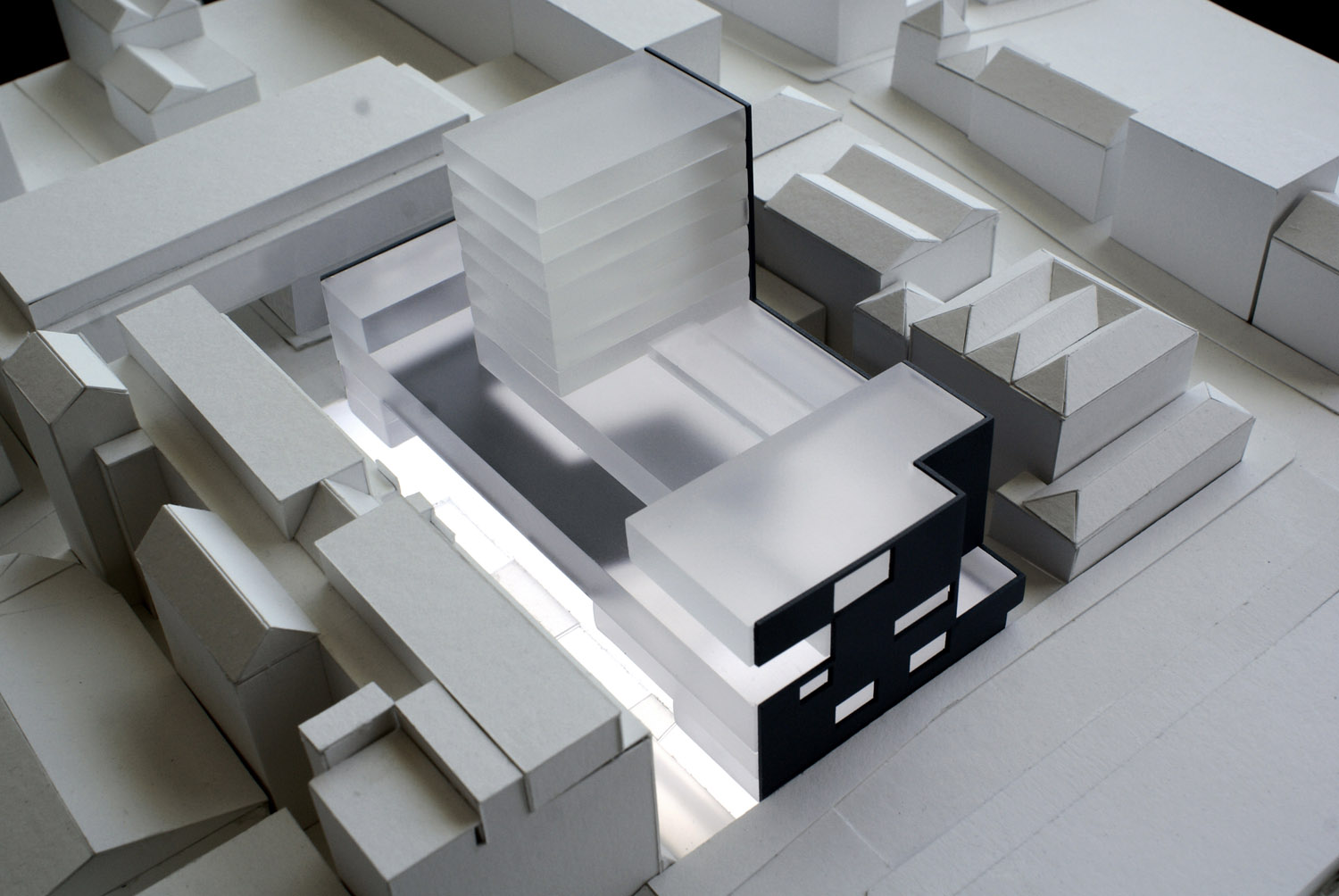 Una circunstancia fundamental nos acerco la primera reflexión sobre la ampliación dela GSAde Glasgow: lo extenso del programa y lo reducido del espacio podía dar lugar a soluciones límite más preocupadas por una identidad fuerte, por una imagen y una caligrafía poderosa, que por un proceso de proyecto que realmente resolviera los problemas fundamentales. Problemas de relación con el edificio existente, espaciales si nos referimos a los talleres o, lo que es más importante, de significación si entendemos el proyecto en términos institucionales. Hemos preferido desarrollar un proceso más complejo pero más atento a todas estas cuestiones que, por encima de la imagen, son fundamentales para dotar a la arquitectura de sustancia.