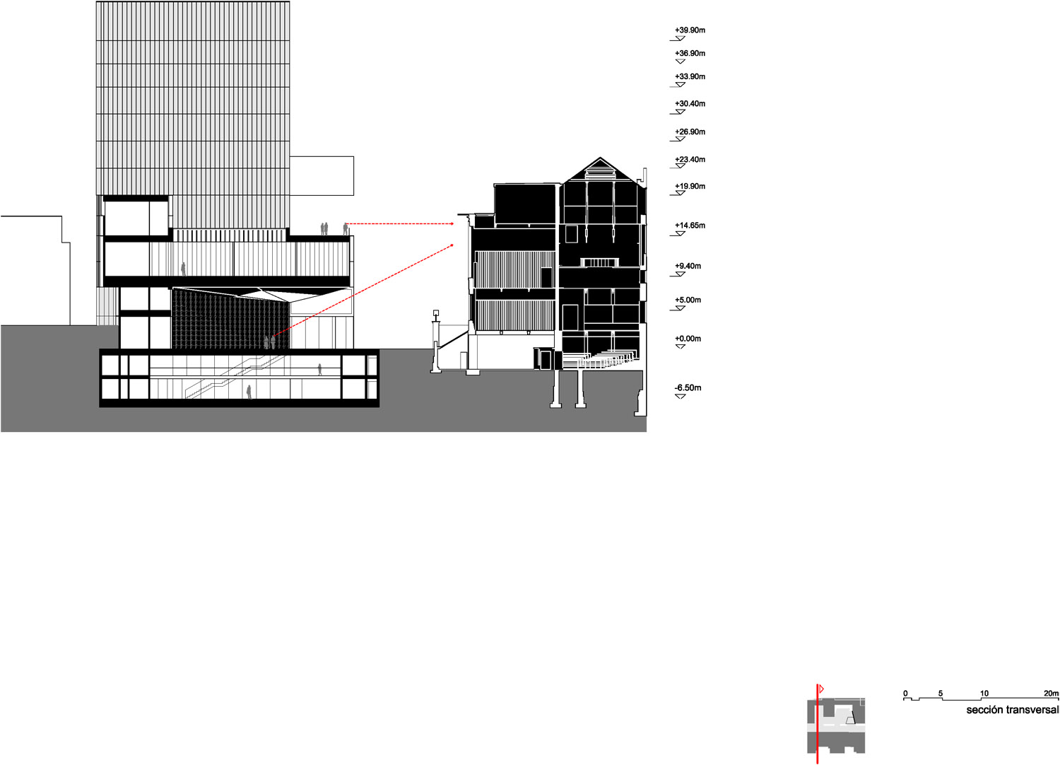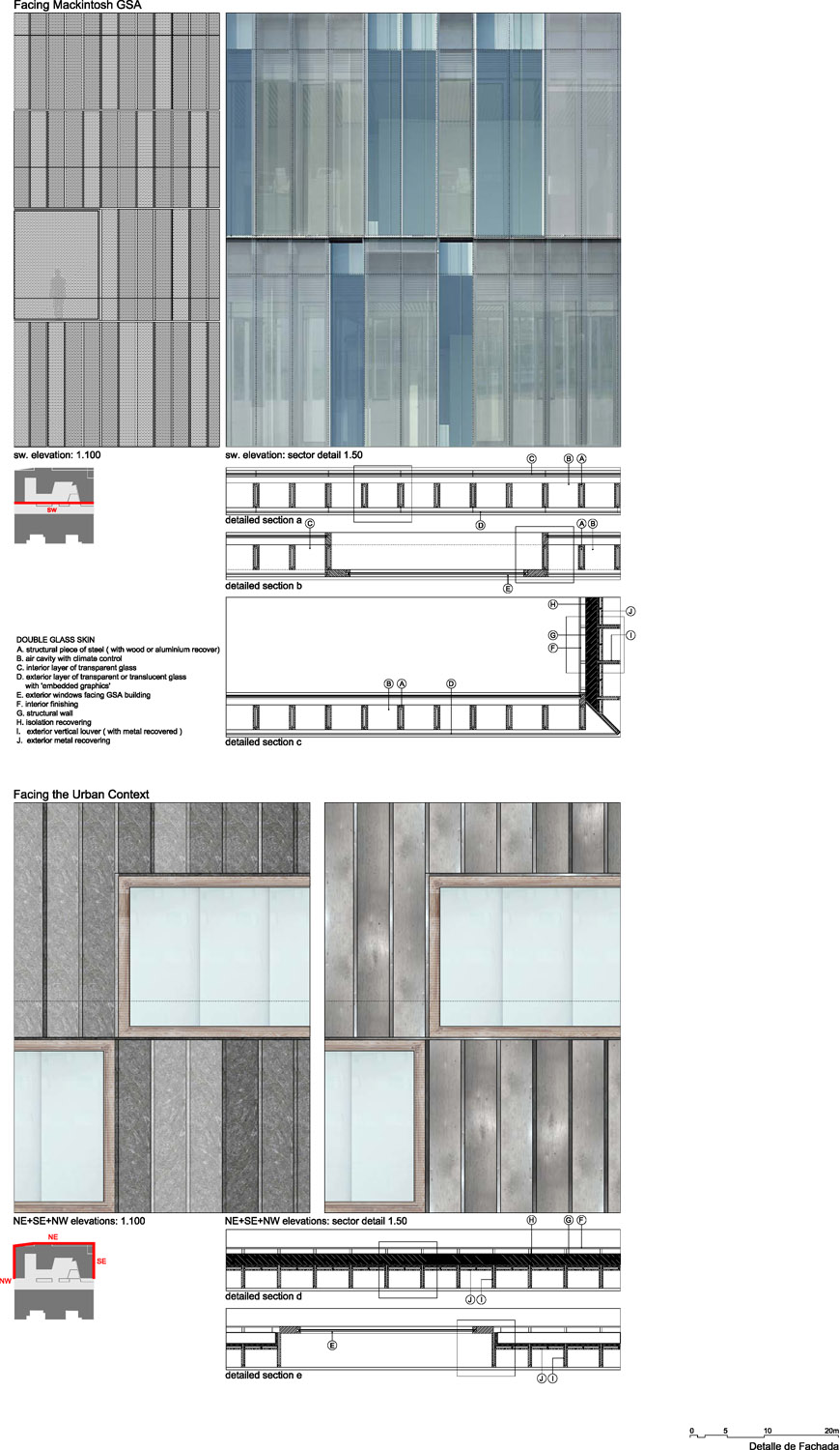 Y finalmente, la luz de Glasgow como elemento que inspira la materialización del edificio. Estos tres conceptos quedan todos ellos dotados de sentido a partir de una idea básica como es la de que el conjunto, el edificio existente y el nuevo han de entenderse como una unidad operativa e institucional, cuestión ésta de gran importancia.