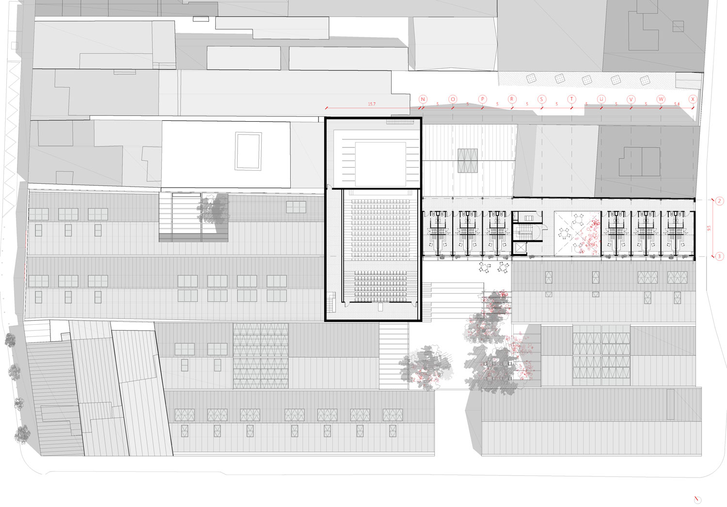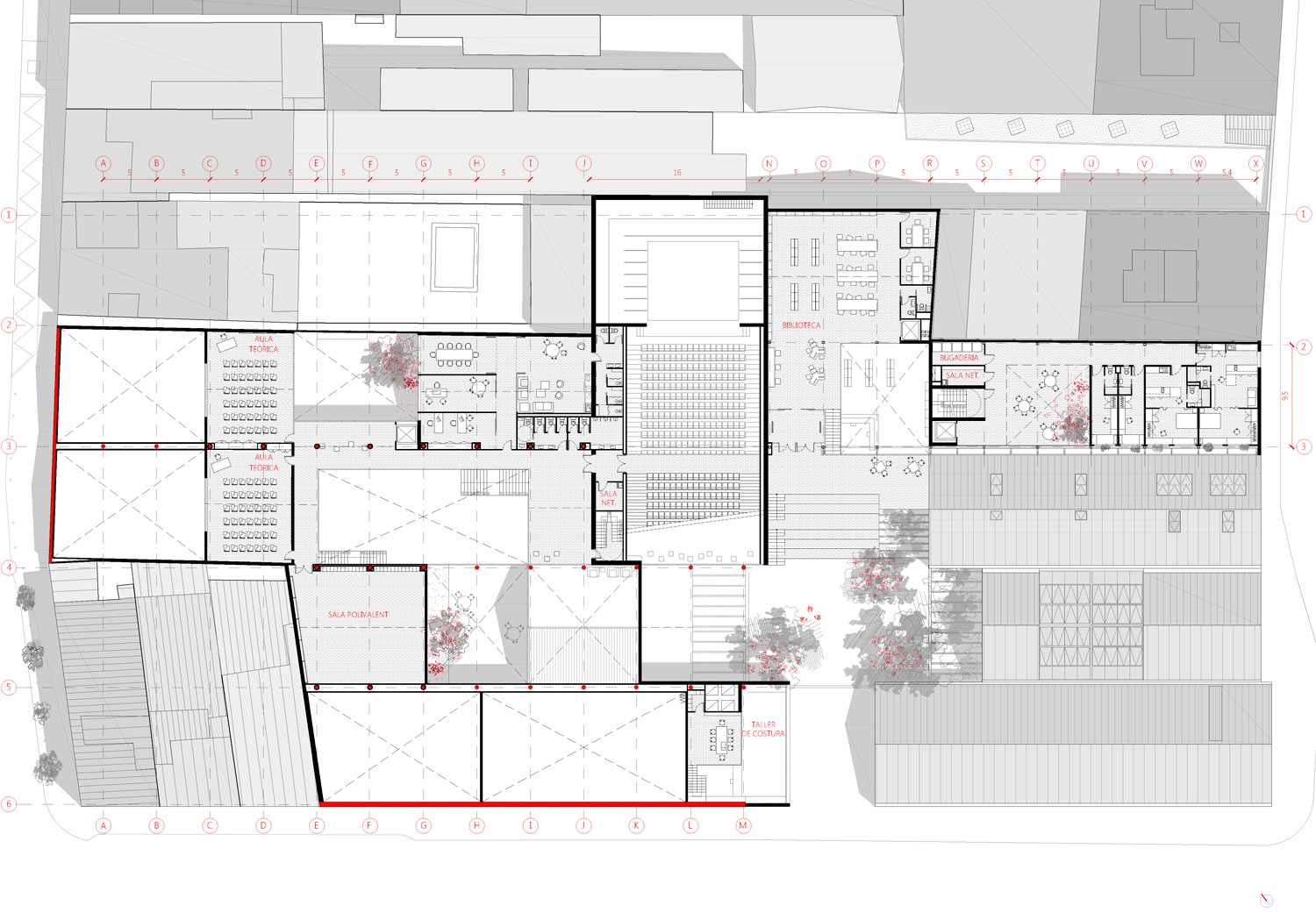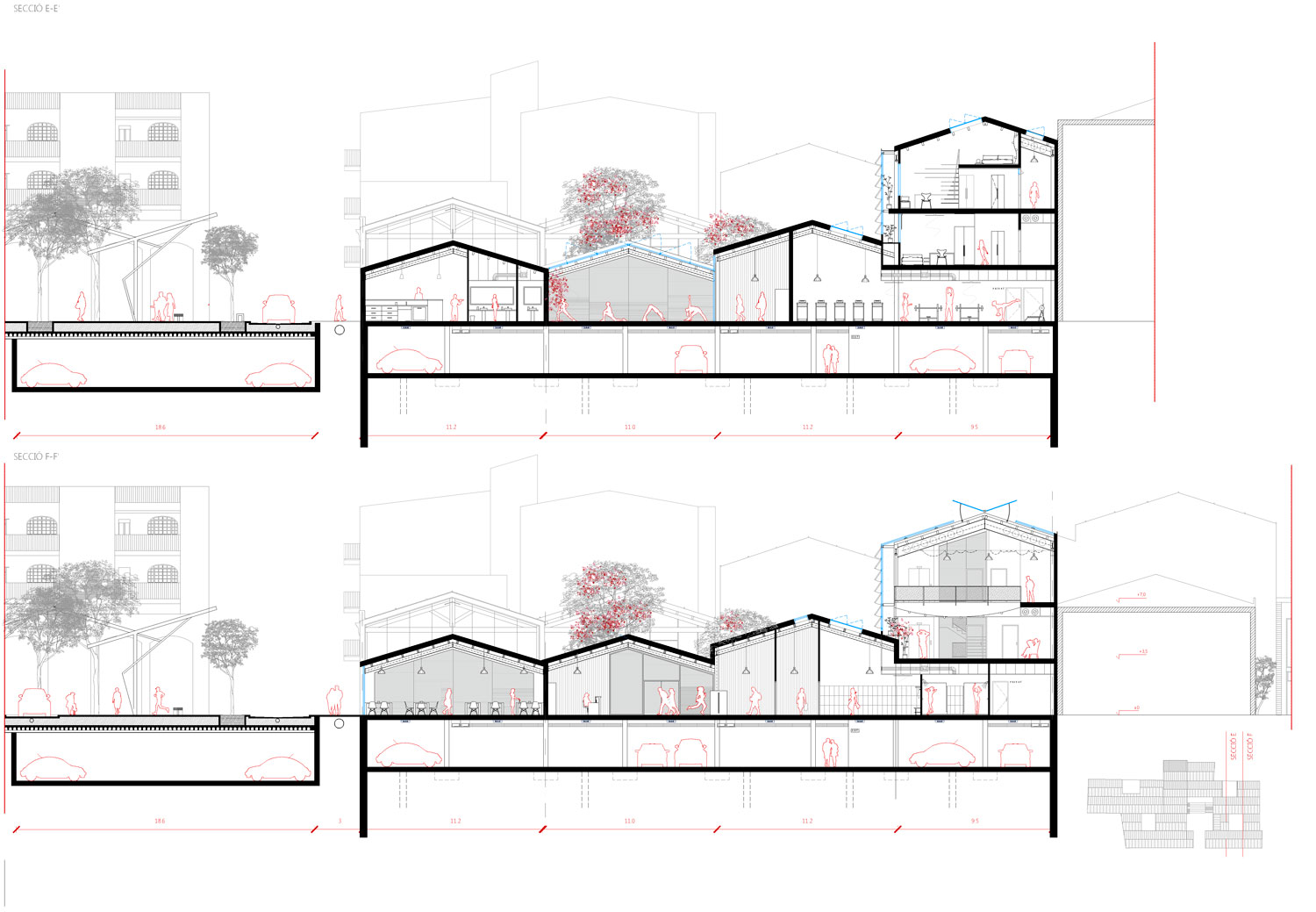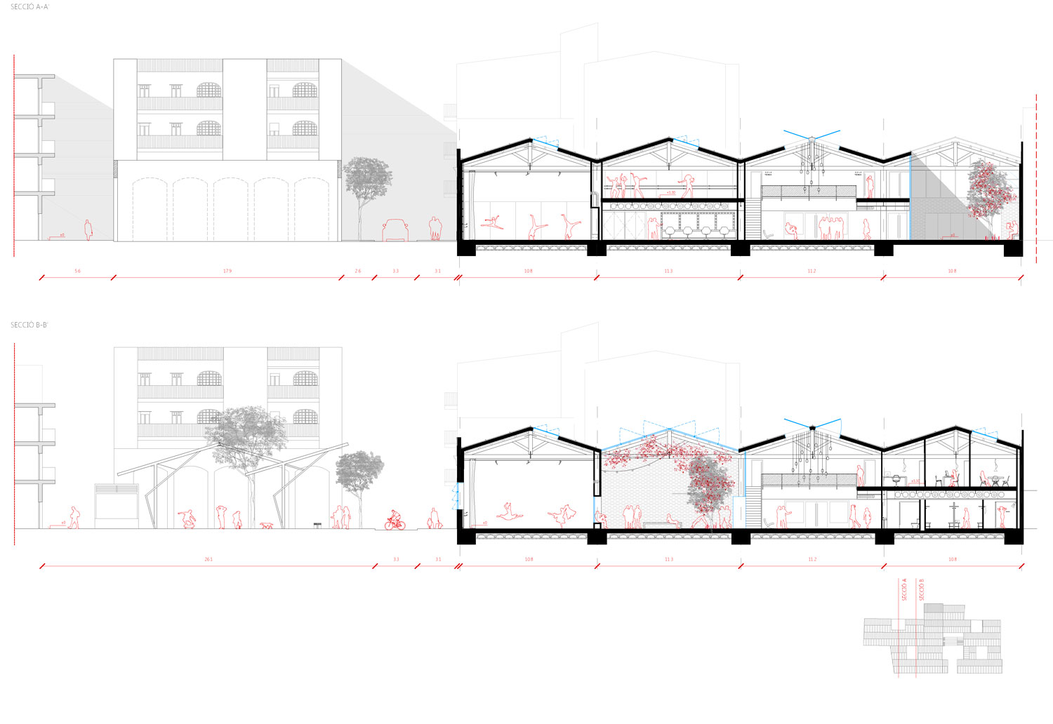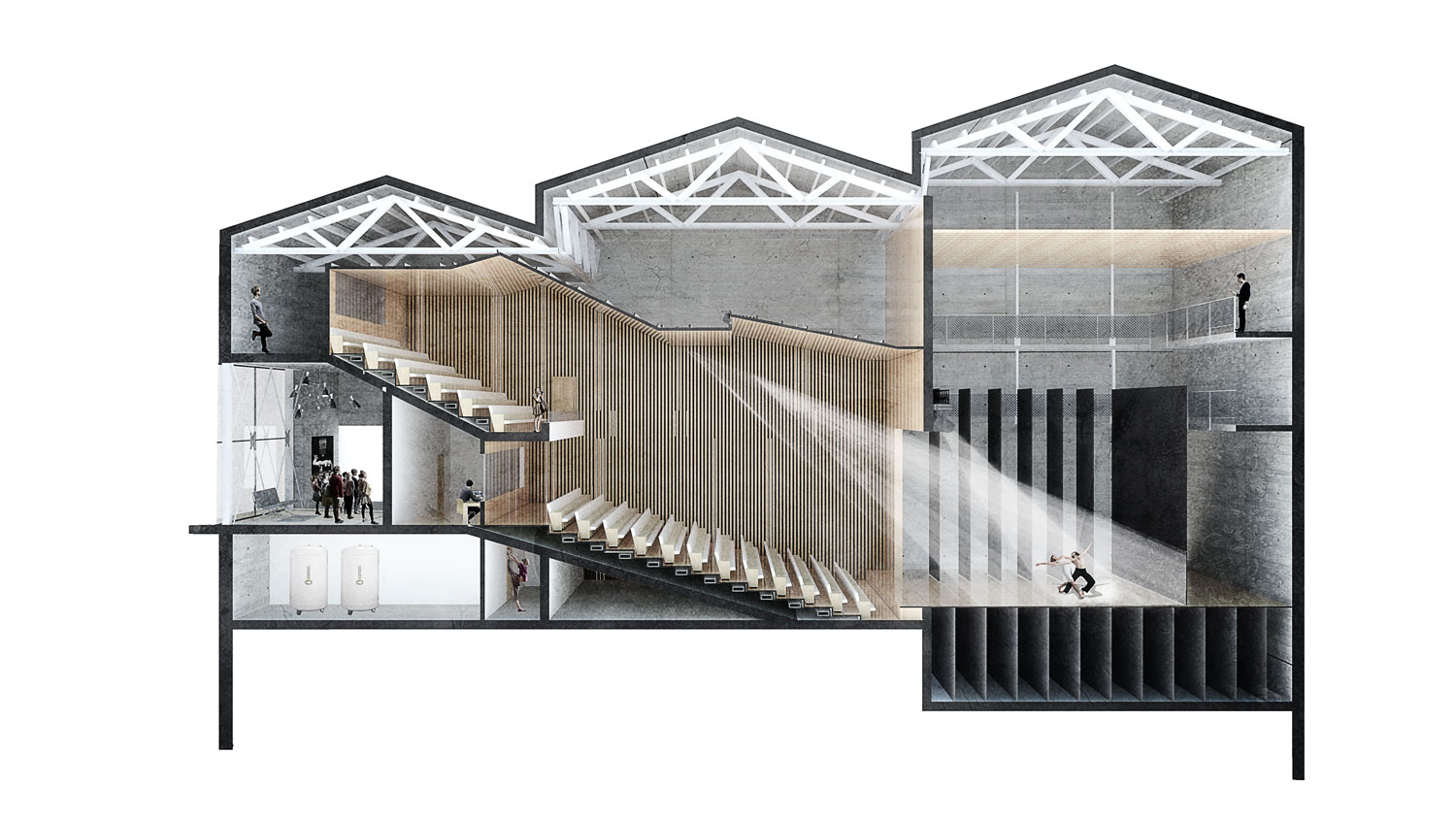 ☉ Escuela de Danza El Carrilet is an academic project by Sandra Martín for ETSA Reus designed in 2016. It is located in Reus Spain in an urban setting. Its scale is medium. Key materials are concrete metal and polycarbonate. Concepts such as adaptable reuse climate adaptation courtyard stripe and sloped roof are explored.