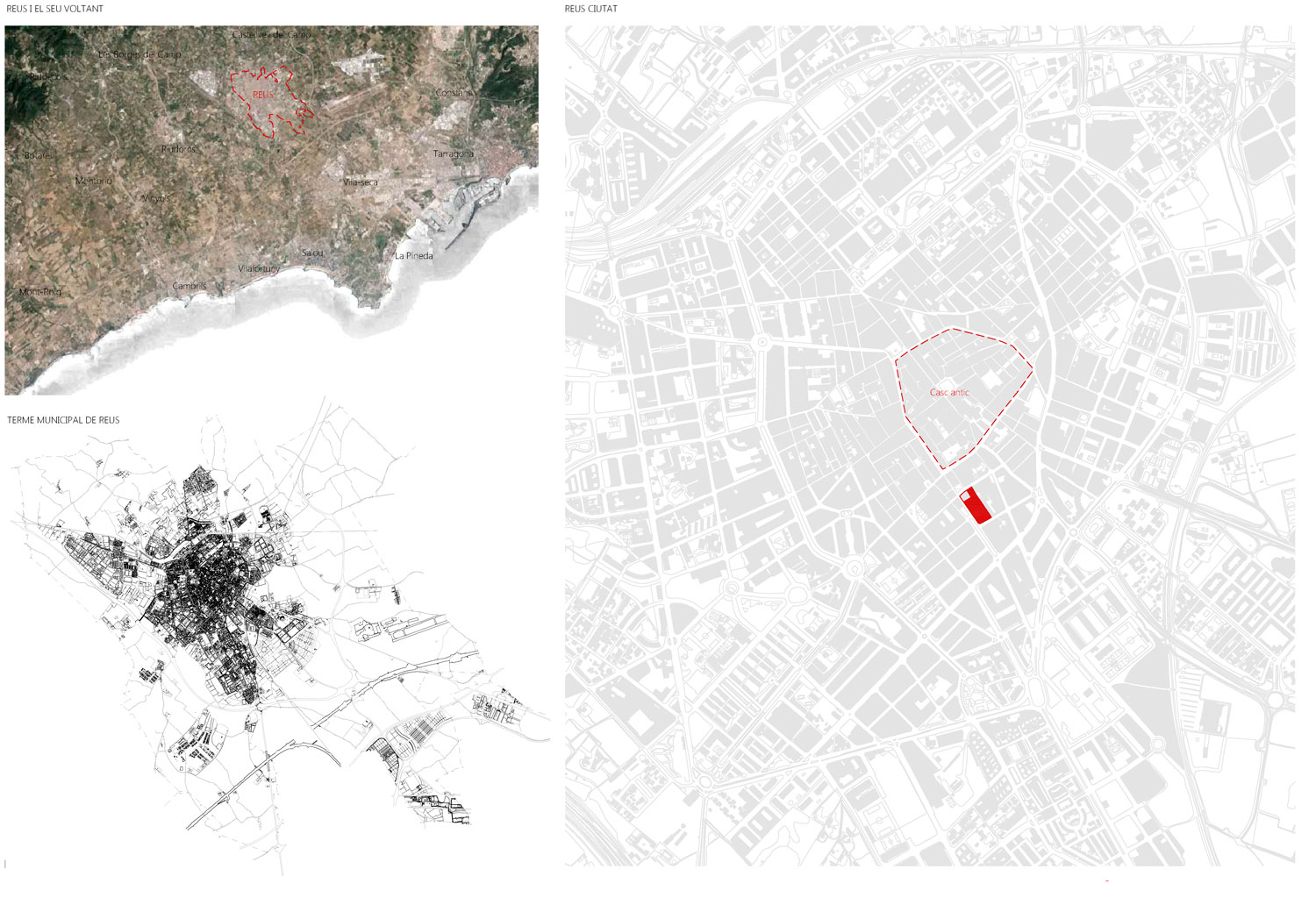El proyecto está situado en Reus, una población de poco mas de 100.000 habitantes del municipio del Tarragonés. La propuesta se lleva a cabo mayoritariamente en un edificio existente, una nave industrial en desuso del 1934 con una superficie de 2.300 m² en una planta en forma de L. Este emplazamiento tiene una peculiaridad, ya que se encuentra en confluencia de dos tramas diferentes entre ellas: