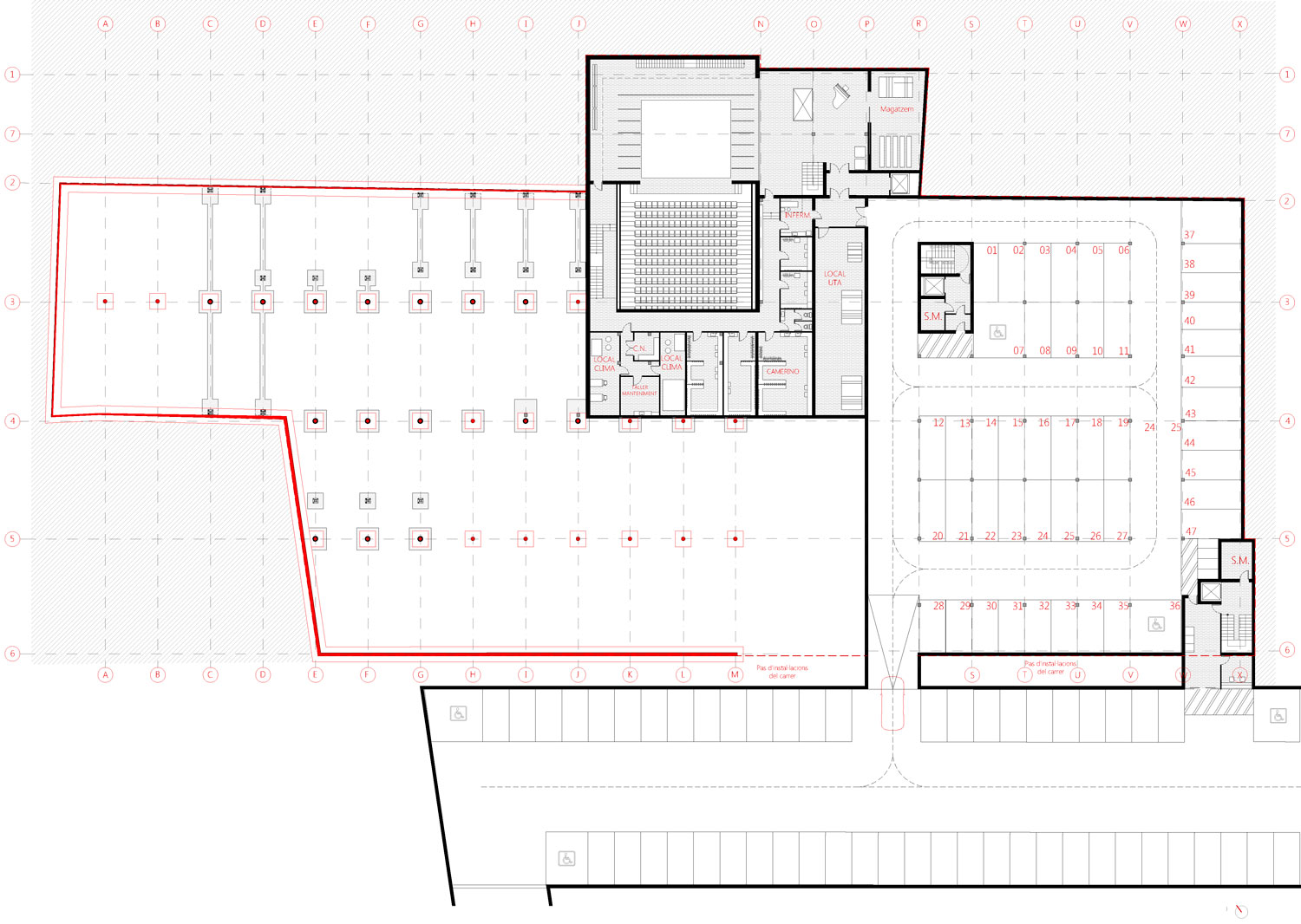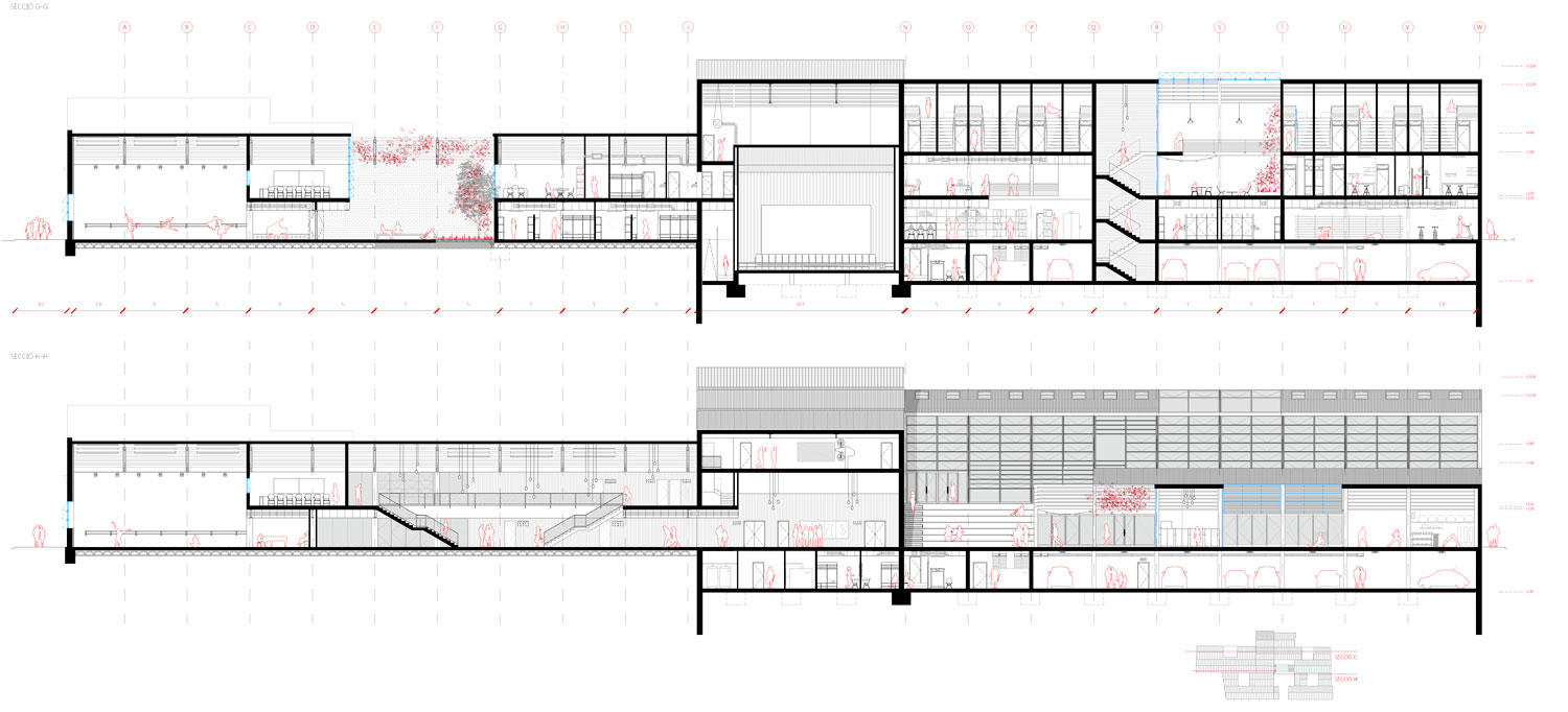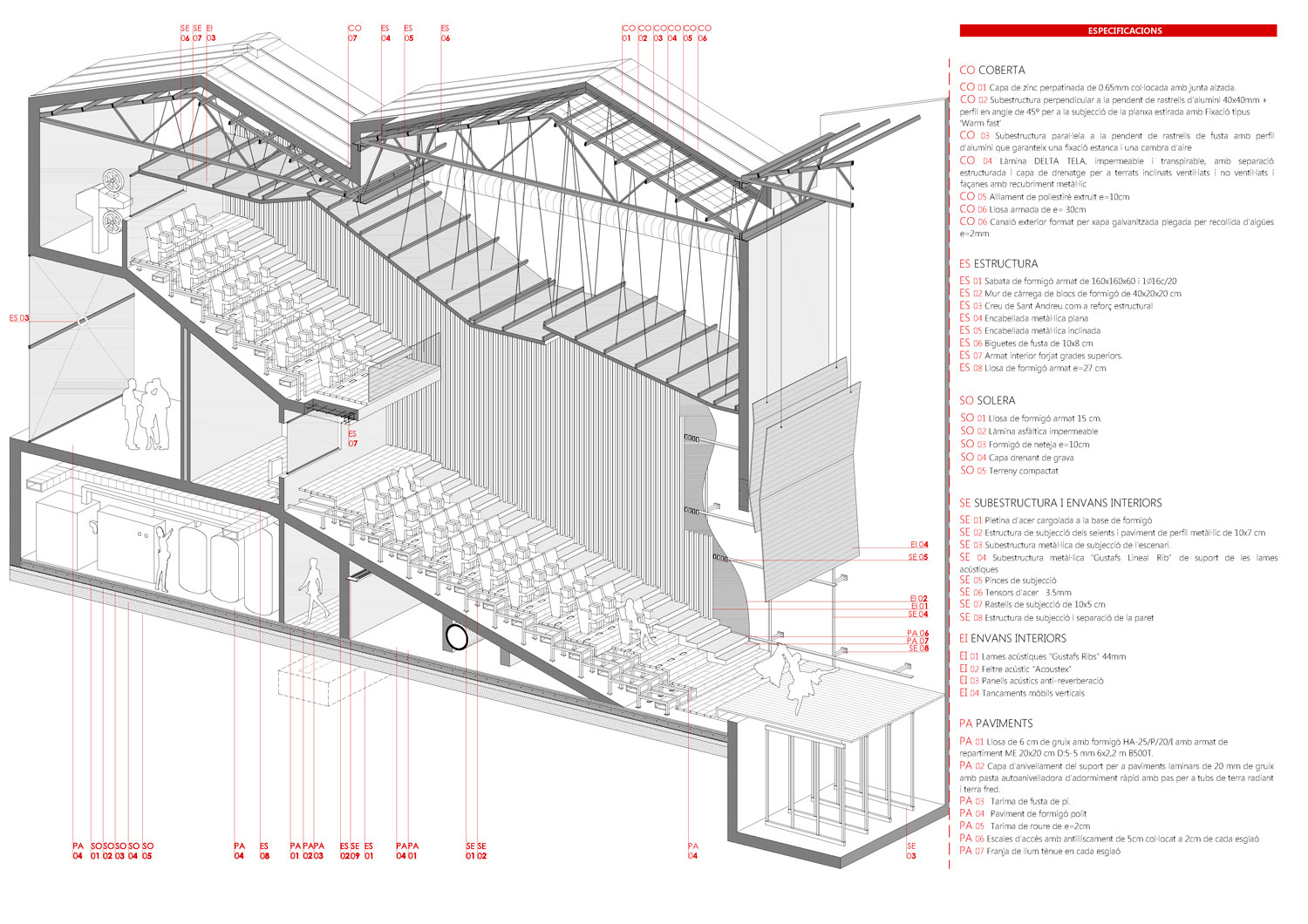 – El auditorio, compuesto por muros de 40 cm de hormigón armado que cierran esta caja. En la parte superior tenemos una serie de cerchas con perfiles Joistec, que soportan grandes luces.