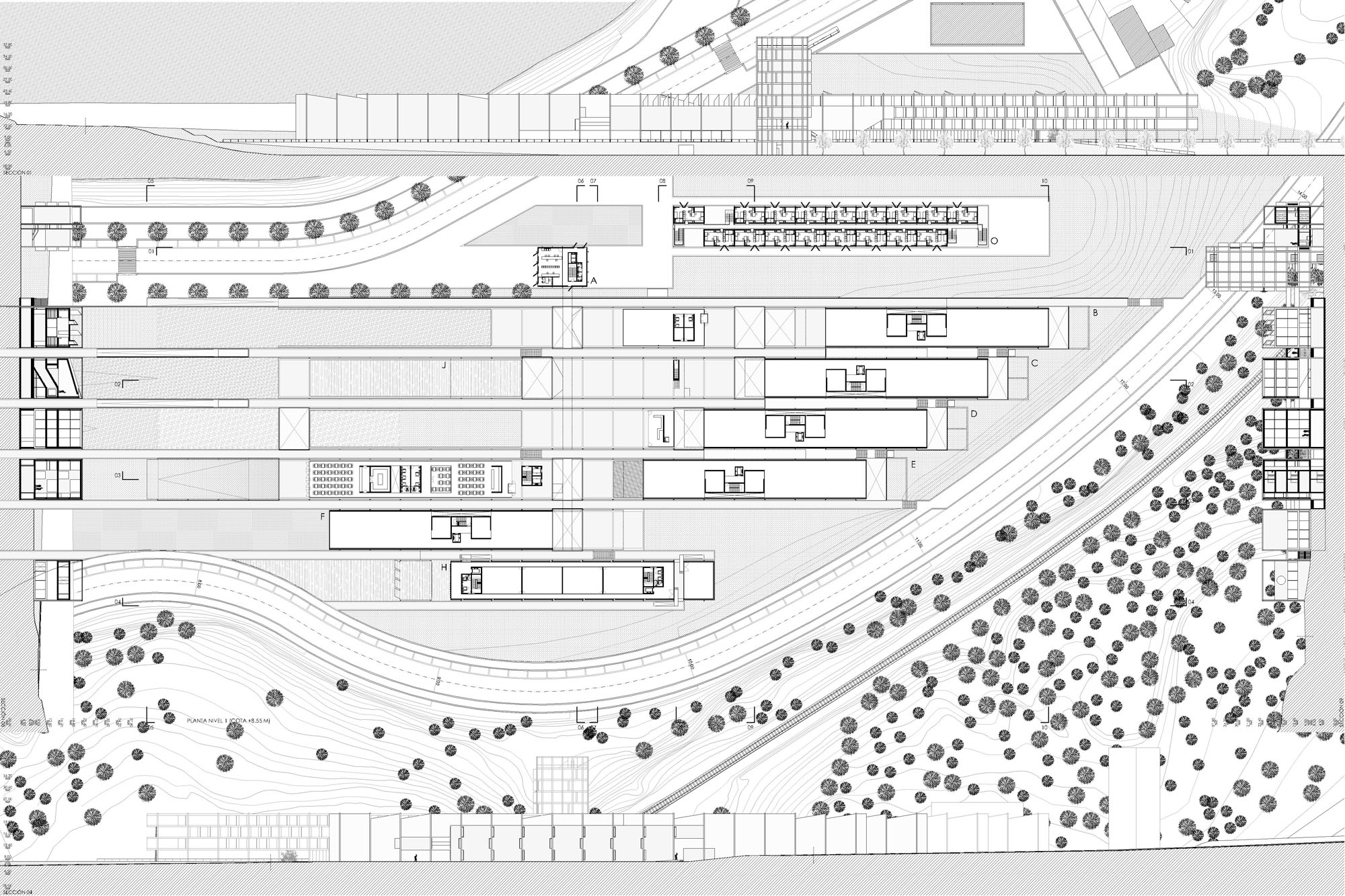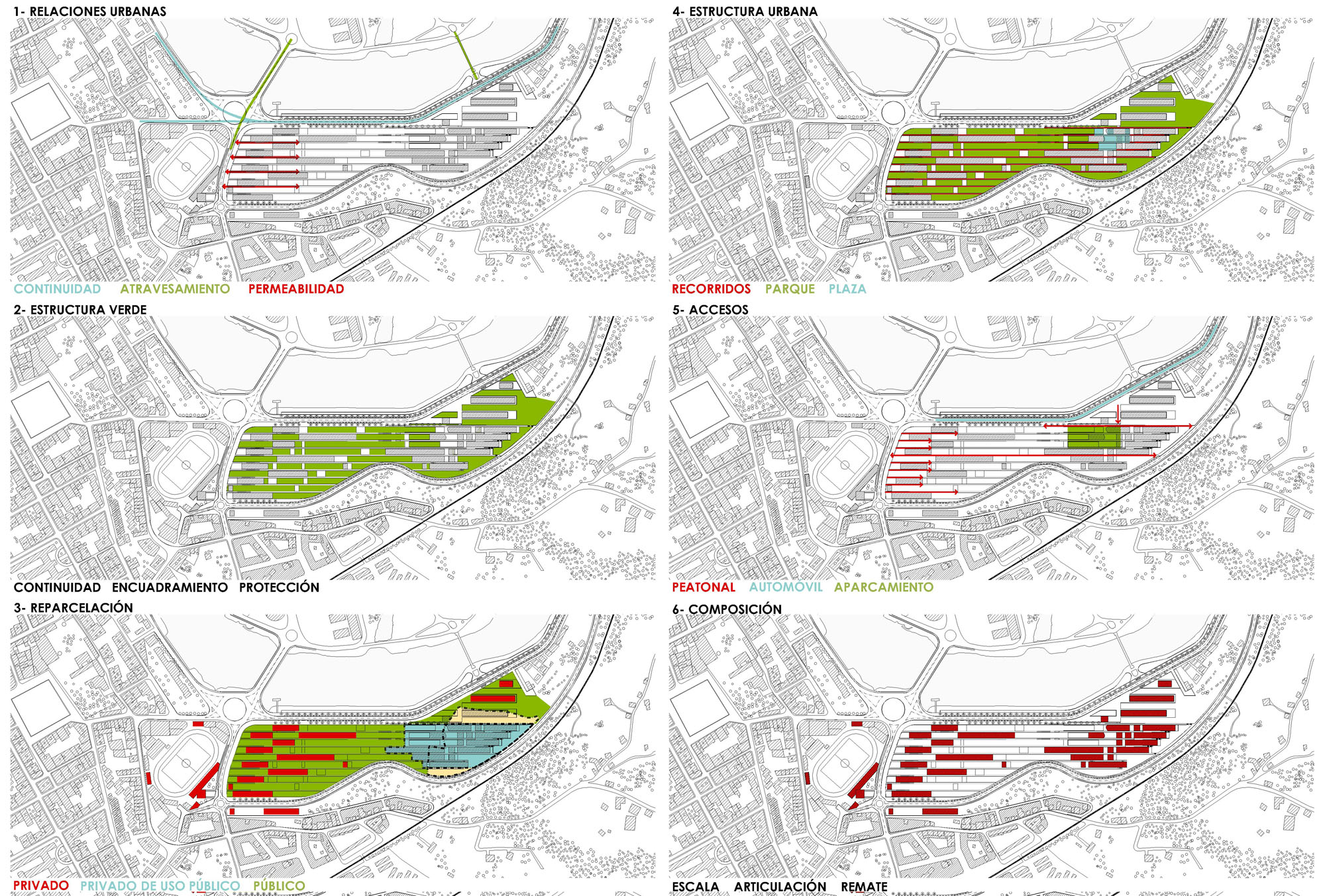 Del Plan se mantuvieron los usos ya que son adecuados a la expansión que la ciudad necesita y que encuentra aquí su “lugar natural” para acontecer. Lo que se propone es otra manera de hacer, tal vez más articulada y más homogénea en la forma y en los espacios, asumiendo siempre que se tratará de otro (un nuevo) tiempo en la evolución de la ciudad y del territorio. Por eso la intervención deberá suceder en un único gesto que sea capaz de traducirse en un todo cohesivo, dotado de una fuerte unidad, fundiendo lo urbano con el paisaje. En este sentido, un parque público abierto podrá constituirse como una especie de “podio” con vistas hacia la ciudad y hacia el paisaje que, por depender de ambos, se asume como un soporte de un orden que permite que existan y/o que sucedan otras cosas.