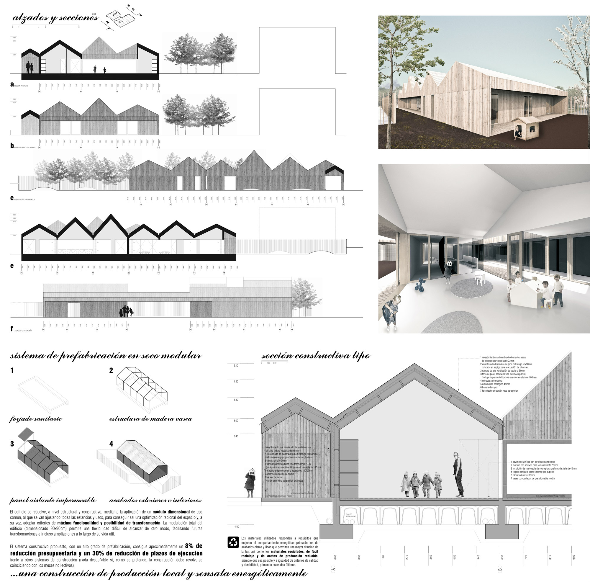 ☉ Escuela infantil y Haurreskola en Zaldibar is a finalist proposal by Alcolea + Tárrago for Ayuntamiento de Zaldibar designed in 2012. It is located in Zaldibar Spain in an urban setting. Its scale is medium with a surface of 615 sqm an estimated budget of 864.240 € and a ratio of 1.405 €/sqm. Key material is wood. Concepts such as sloped roof and courtyard are explored.