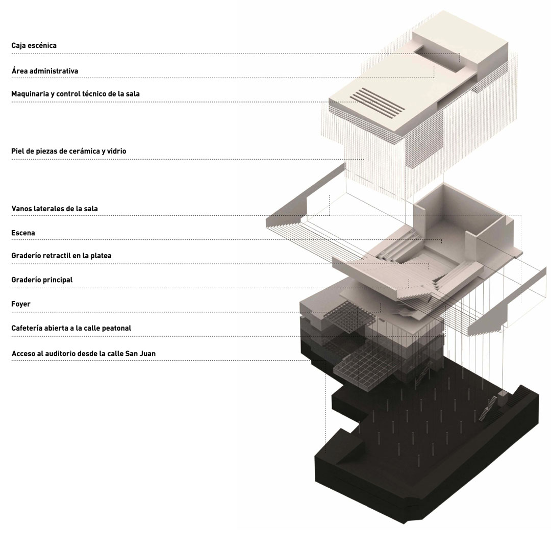 The design of the auditorium allows perform events of different nature or audience, providing flexibility in the relationship between audience and scene, and in terms of daylight, by the following strategies: