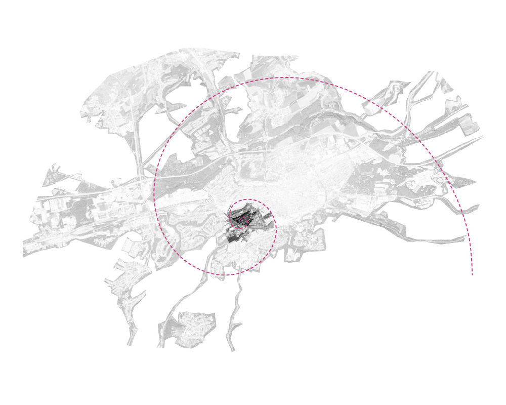 The city is an image, which transforms from the first instant and never materializes. It should be understood as a dynamic entity, where nothing remains the same over time, where everything is sequential. It flows governed by the laws of nature and human being. It is therefore impossible to concrete, as laws in constant transformation determine every city. Nevertheless, the architect, through study, is able to understand their development logics and act accordingly, allowing the future to flow in harmony. We understand that aiming to predict a flowing logic of development, the architect should focus on the study of the speed of change. Thus identifying the components of the city and ordering them by dependency degree, where slower, static structures are those which determine or condition while faster, versatile ones, are those determined or conditioned. We realize the city based on a dependency hierarchy, a network of dependency laws under a FRACTAL logic, in which static, structural elements, define the limits and possibilities of the versatile. A first structural order defines a second order and so on. Under this fractal logic, a room depends on the structure of the apartment, the apartment depends on the structure of the building, the building on the structure of the neighbourhood, the neighbourhood on the city structure, the city on the territory…
