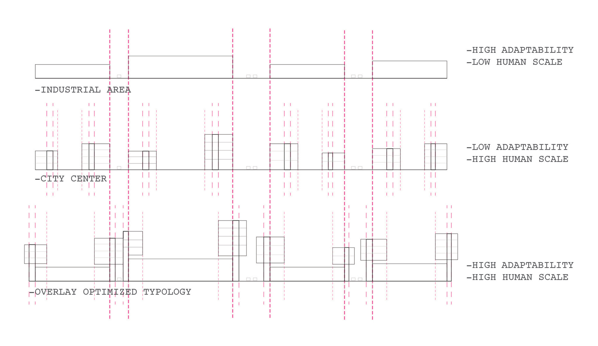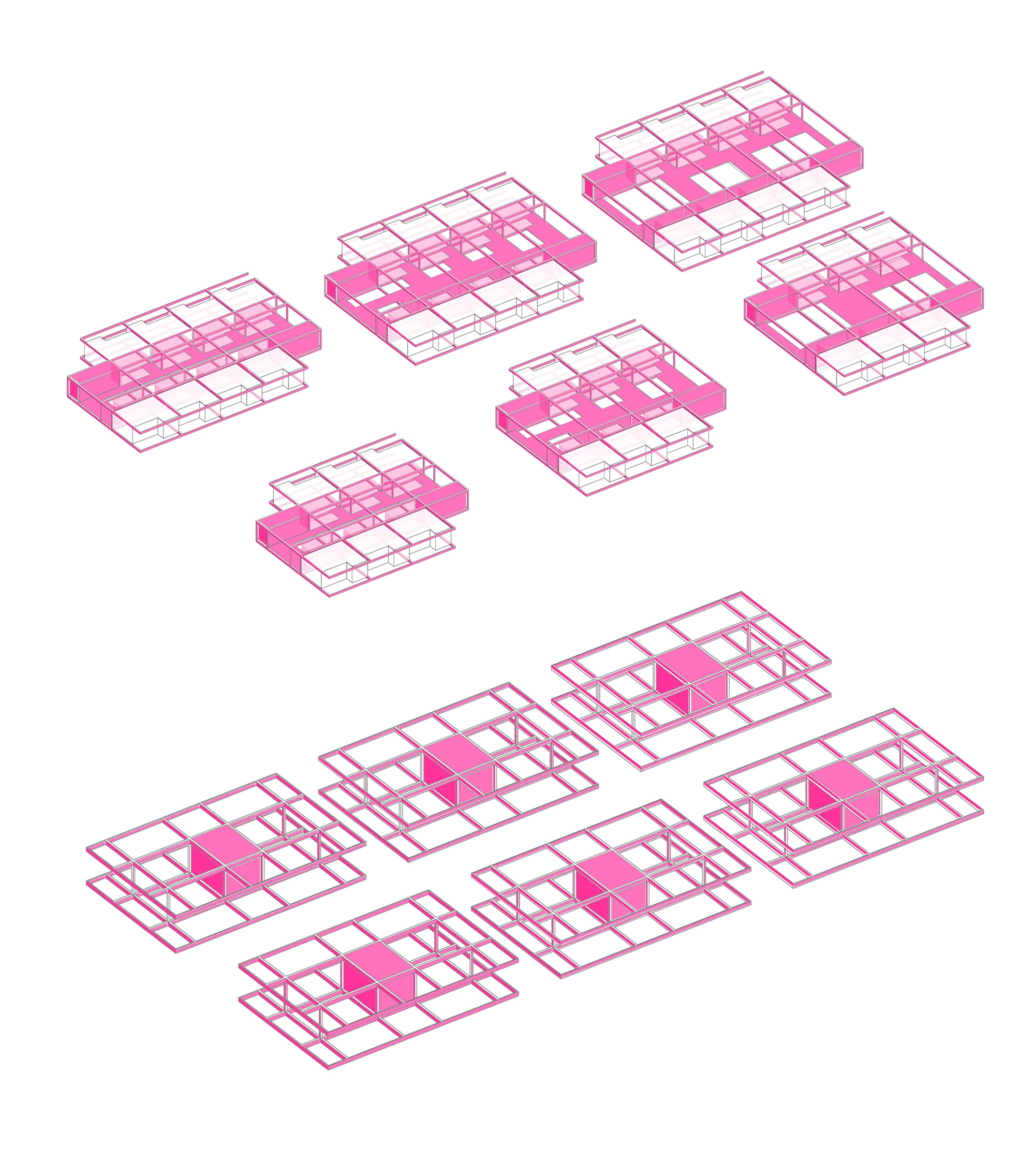 Heading for a flexible organic development the system enables multiple typologies. By little alteration we demonstrate how some of the well known would fit. Growth pattern defined by the development of urbanistic strategies, establishing the scale of the areas and scopes of a situation of static architectural static structures that will allow the development.