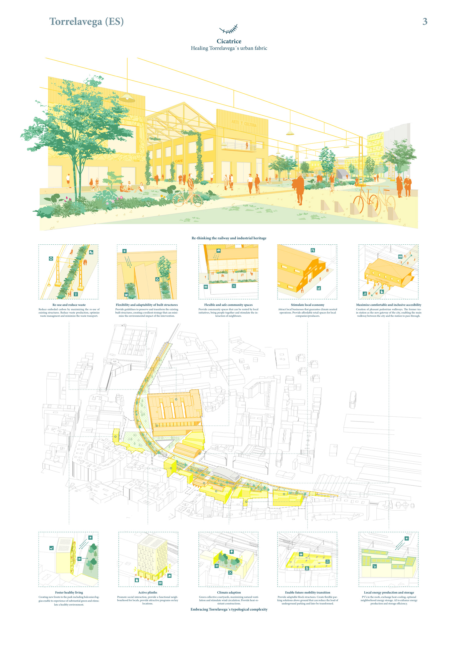 ☉ Europan 17: Torrelavega is a winning proposal by Estudio Mars and Manuel Villalain for Europan and Ayuntamiento de Torrelavega designed in 2023. It is located in Torrelavega Spain in an industrial and railway setting. Its scale is large with a surface of 54.000 sqm.