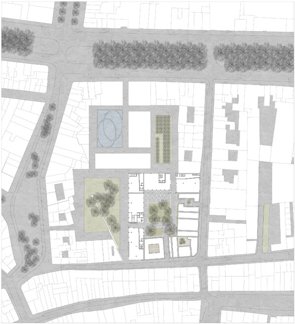 Falconplein Housing is a completed project by Caruso St John Architects for AG Vespa and Municipality of Antwerp designed in 2014. It is located in Antwerp Belgium in an urban setting. Its scale is large. Concepts such as plaza thick wall and fragmentation are explored.