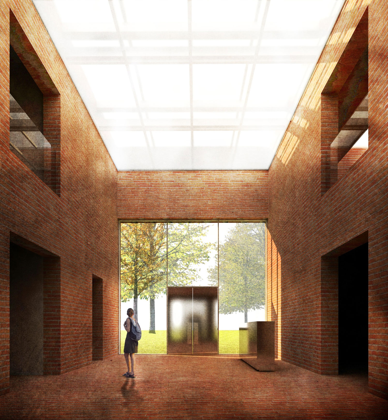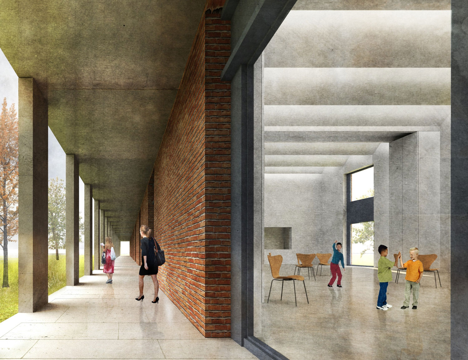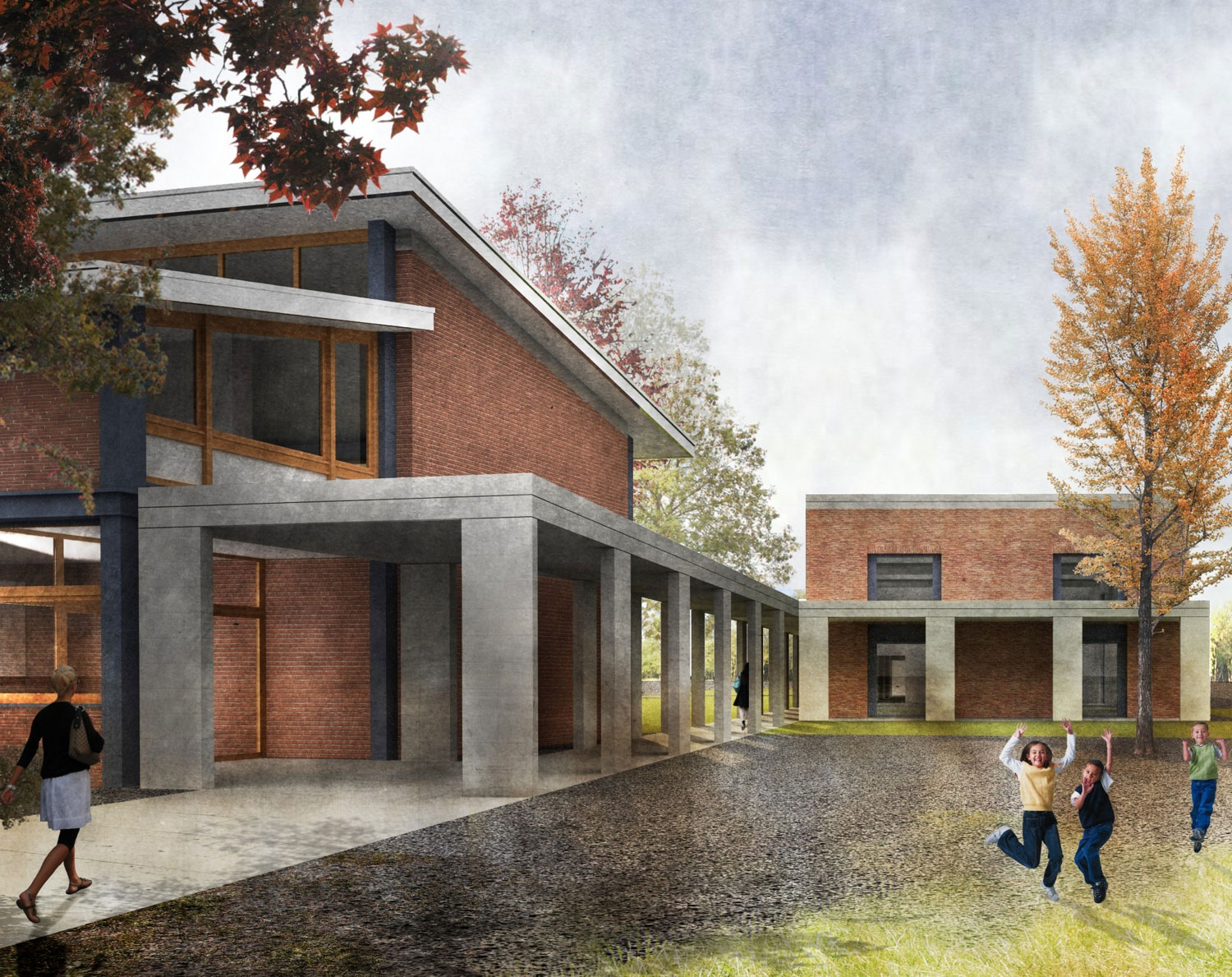 ☉ Geisendorf Park is a finalist proposal by Gonzalo Martinez for Centre pédagogique Geisendorf designed in 2012. It is located in Geneva Switzerland in a park setting. Its scale is medium with a surface of 1.600 sqm. Key materials are brick and concrete. Concepts such as extension plinth and zenithal light are explored.