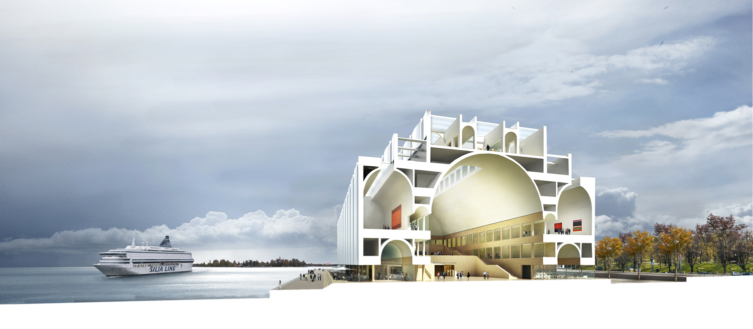 ☉ Guggenheim Helsinki is a proposal by Campomarzio for Guggenheim Foundation designed in 2014. It is located in Helsinki Finland in a seaside setting. Its scale is large. Key material is concrete. Concepts such as section atrium and vault are explored. Review the 21 proposals for the same competition.