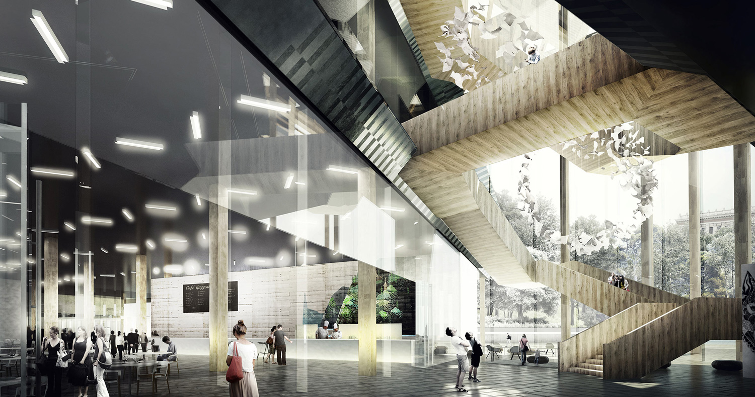 ☉ Guggenheim Helsinki is a proposal by NAS Architecture and NBJ architectes for Guggenheim Foundation designed in 2014. It is located in Helsinki Finland in a seaside setting. Its scale is large with a surface of 9.000 sqm. Key materials are glass and metal. Concepts such as box roof and transparency are explored. Review the 21 proposals for the same competition.