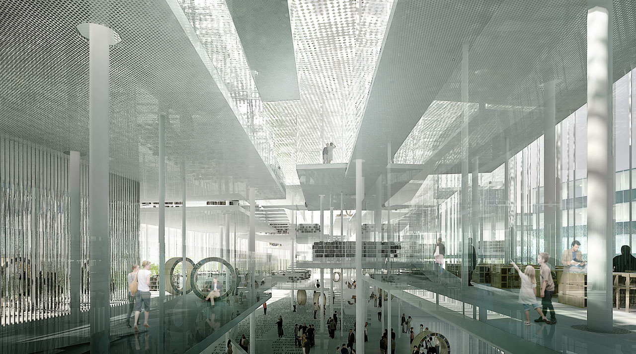 ☉ Helsinki Central Library is a proposal by MenoMenoPiu Architects for Helsinki Municipality designed in 2012. It is located in Helsinki Finland in a railway and park setting. Its scale is medium with a surface of 4.500 sqm. Key materials are glass and metal. +imgs collaborated as visualizer. Concepts such as atrium structural praise linear block and grid are explored. Review the 7 proposals for the same competition.