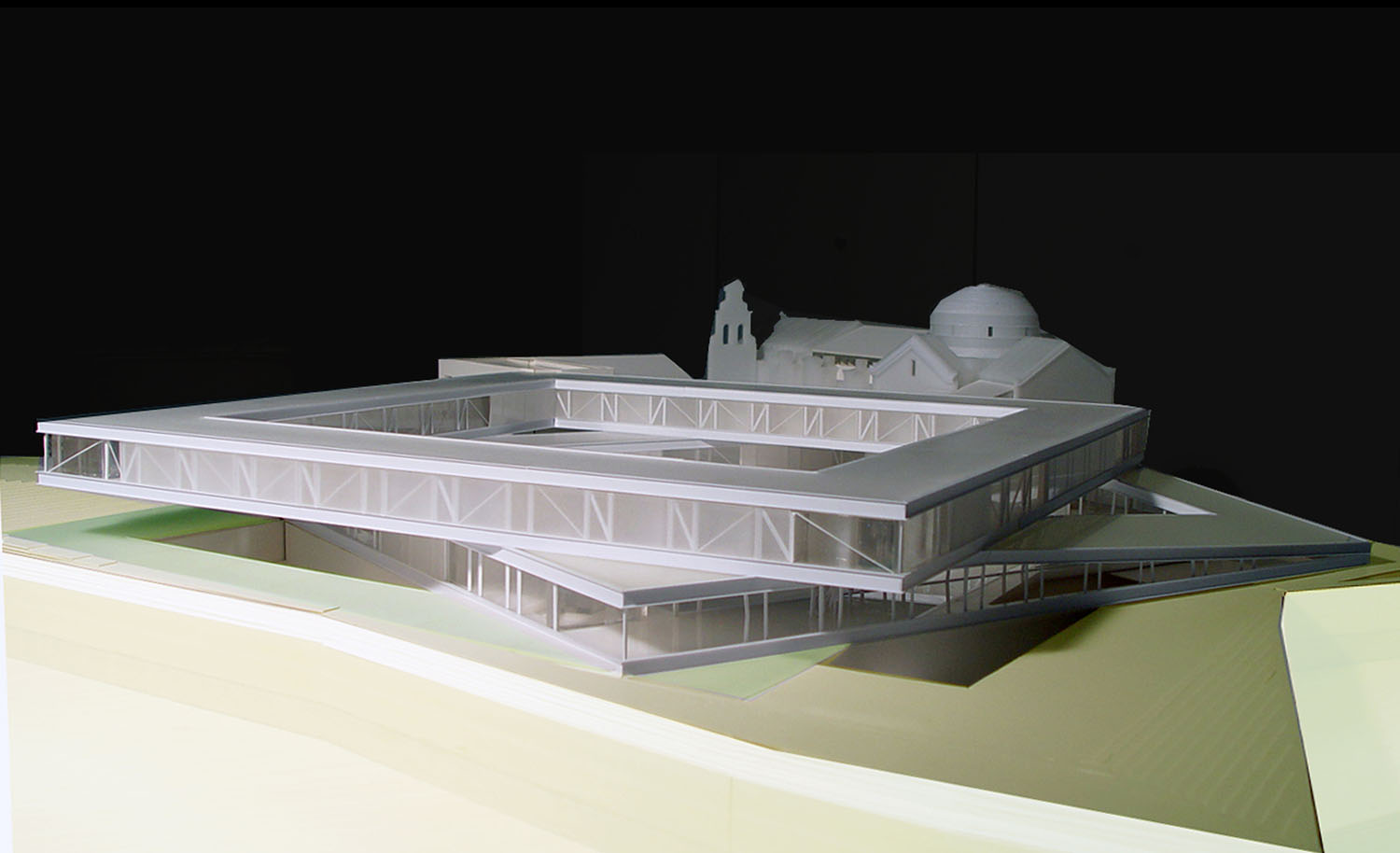 – El convento alberga los espacios de relación próximos al vestíbulo principal. El salón social ocupa la planta alta del edificio renovado. La cafetería se ubica en la planta inferior del edificio original, accesible también desde el exterior, volcada a la antesala del edificio que se relaciona con las comunicaciones transversales de la parcela.