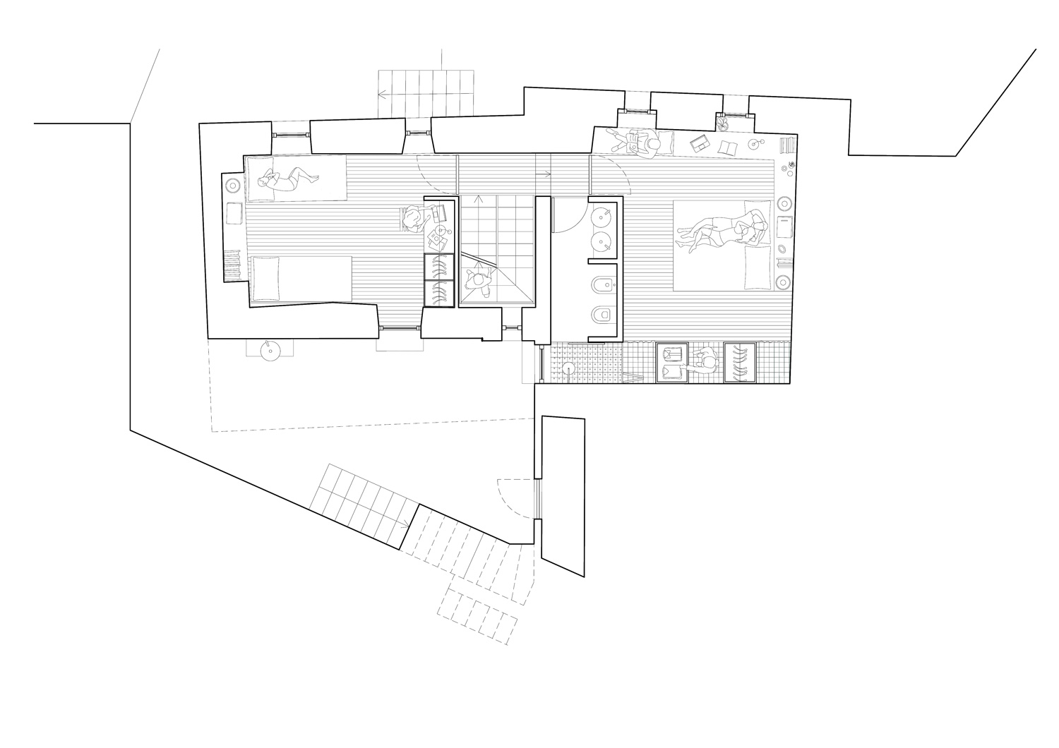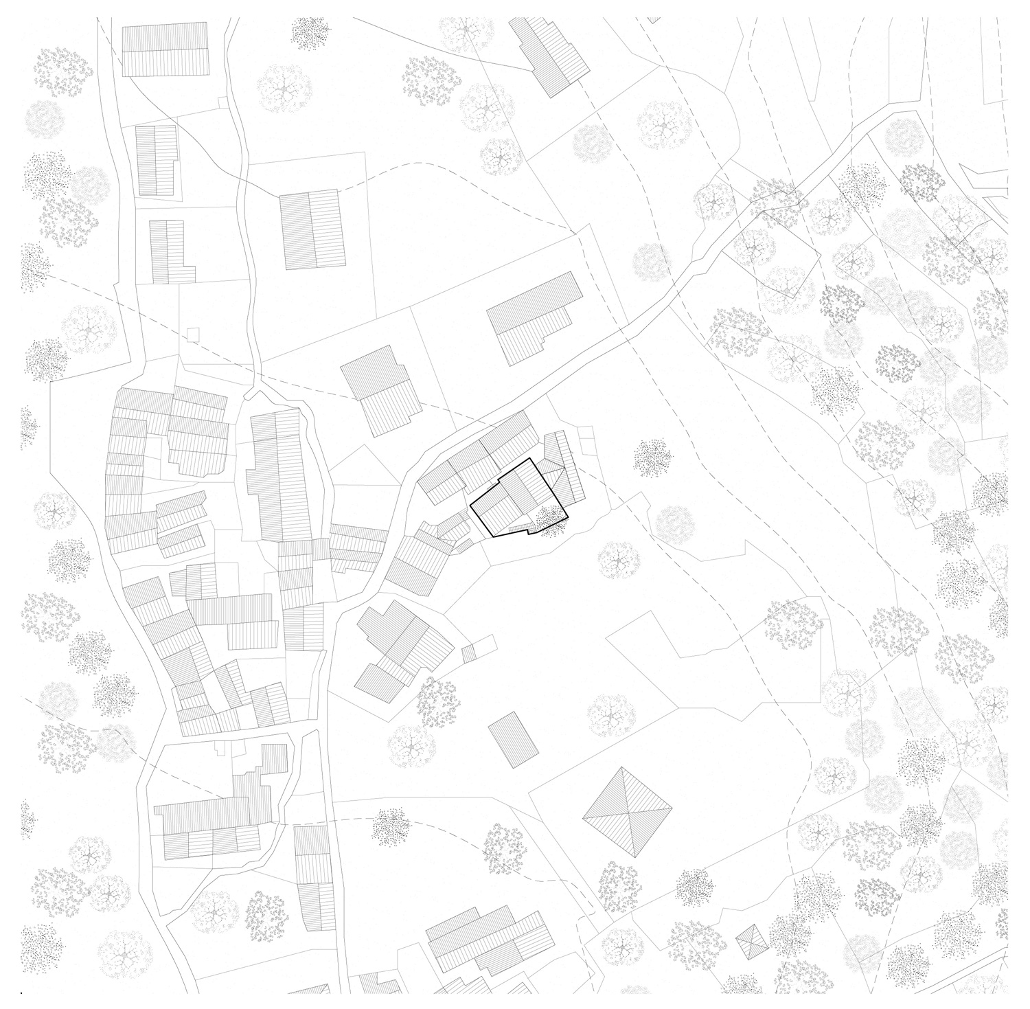 ☉ House Around the Hearth is a proposal by ATOMAA and Studio Asabesi designed in 2017. It is located in Fomarco Italy in a rural setting. Its scale is small with a surface of 213 sqm. Key materials are stone and wood.