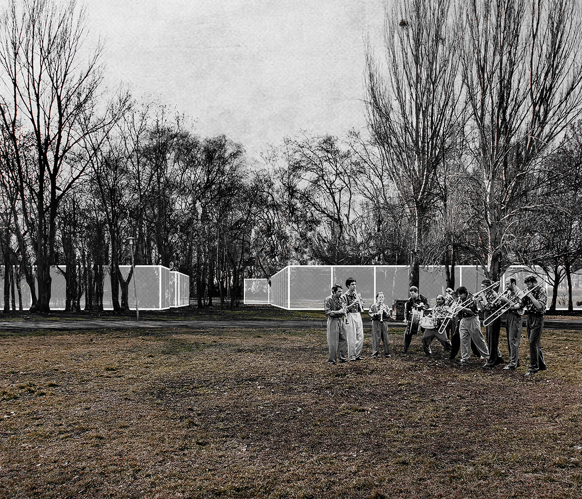 The brief does not allow an explicit relationship between projects by different offices. Instead of trying to make a series of buildings linked by formal similarities, we aim at offering specific and differentiated appropriations of the natural void of the Park, understood as a very important piece of public space in Budapest.