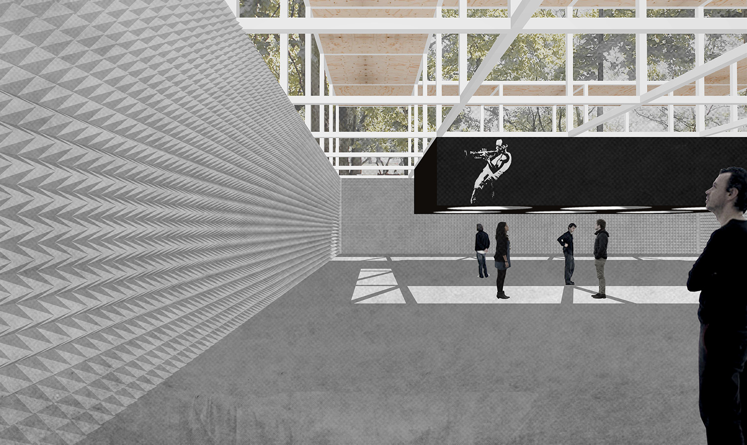 Permanent exhibition, temporary exhibition, and the auditorium are the main volumes of the program. These volumes can occupy the 3 large free sites of the plot. On these sites, 3 excavations absorb the differences in height and acoustically isolate the sound installations, allowing these to benefit from the thermal inertia of the soil. This limits the visual impact of the pavilions, avoiding a monumental effect.