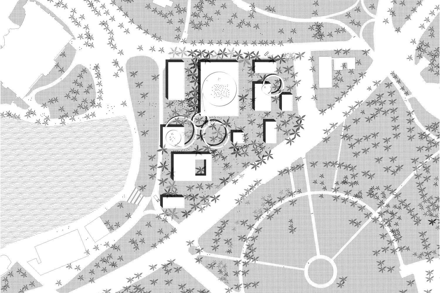 The new park will be articulated by the relation between its natural landscape and a series of buildings with different programs and typologies. These structures can be thought as an extension of a metropolitan-scale organic fabric of movements and city sights patterns. The intervention for the House of Hungarian Music has to be integrated into this system.