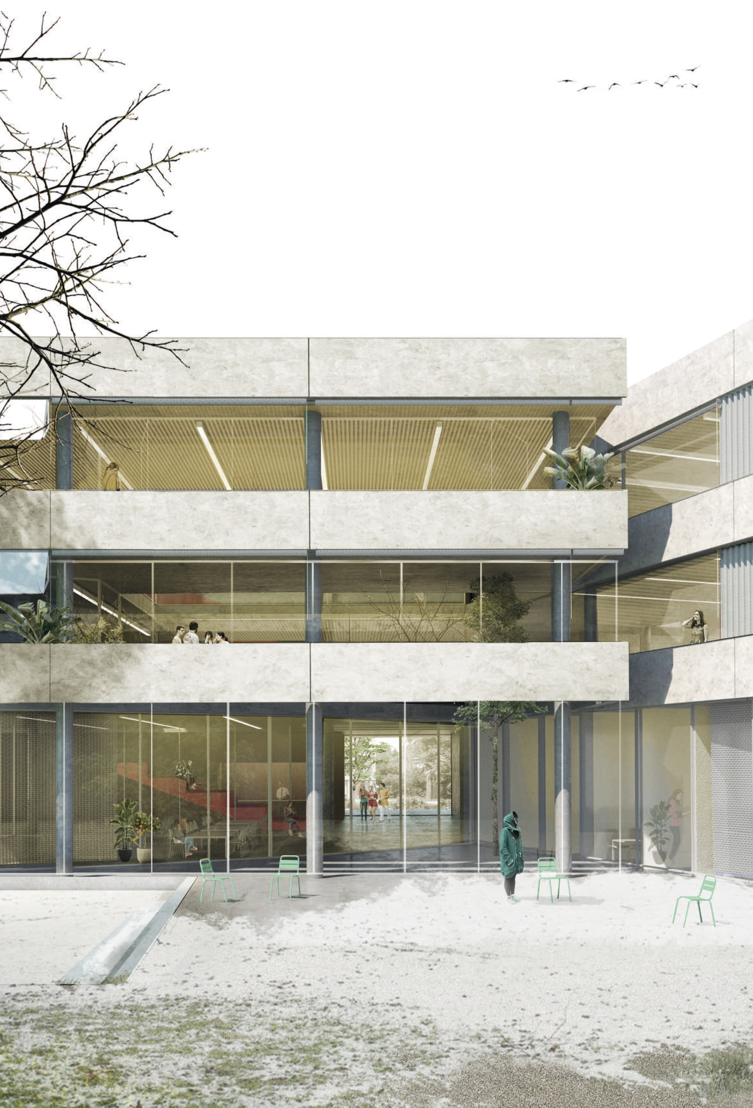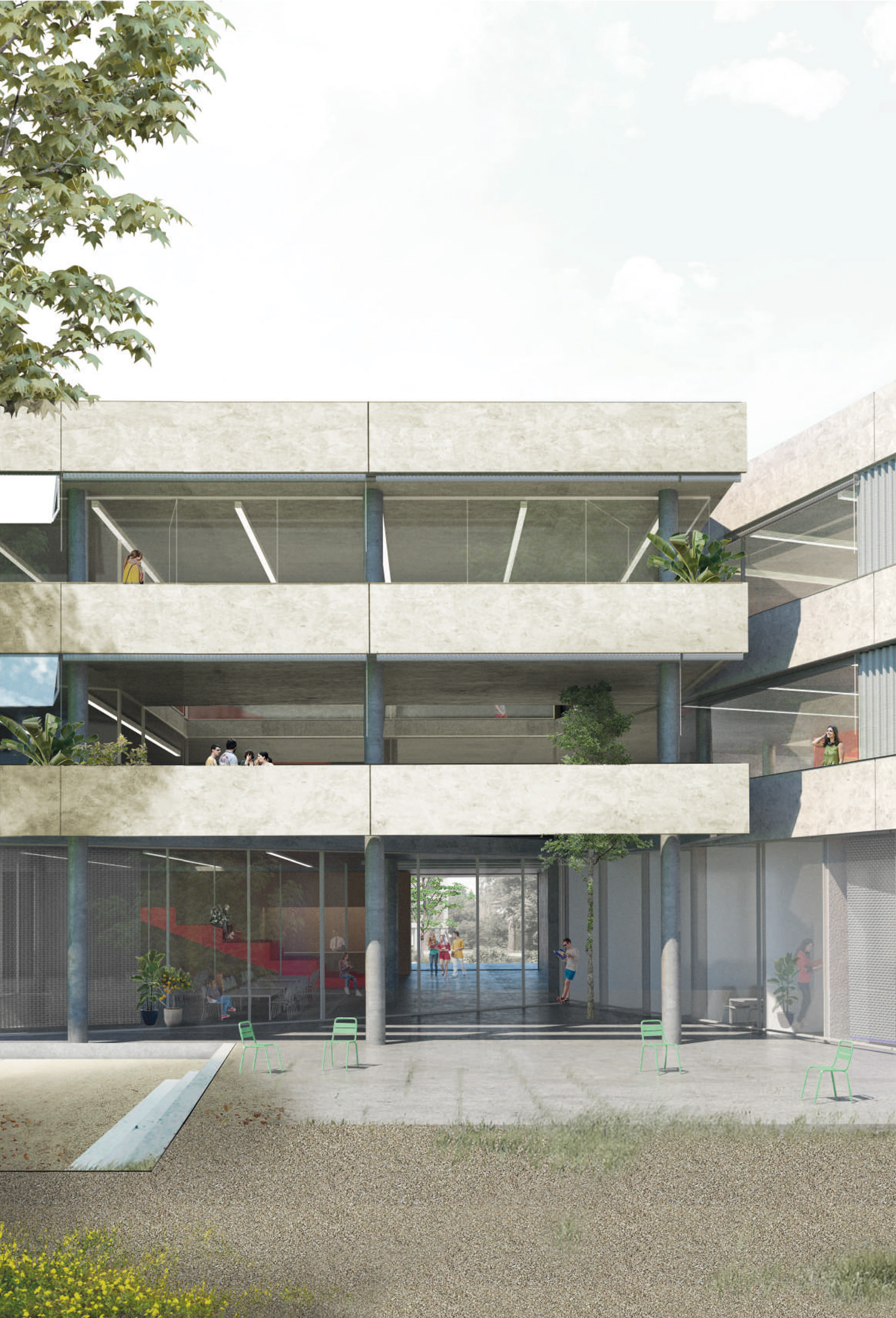 ☉ IES Vía de la Plata is a proposal by Triple Office and Enmedio Studio designed in 2019. It is located in Guijuelo Spain in an urban setting. Its scale is medium with a surface of 7.747 sqm an estimated budget of 9.287.158 € and a ratio of 1.199 €/sqm. Key materials are concrete and glass.