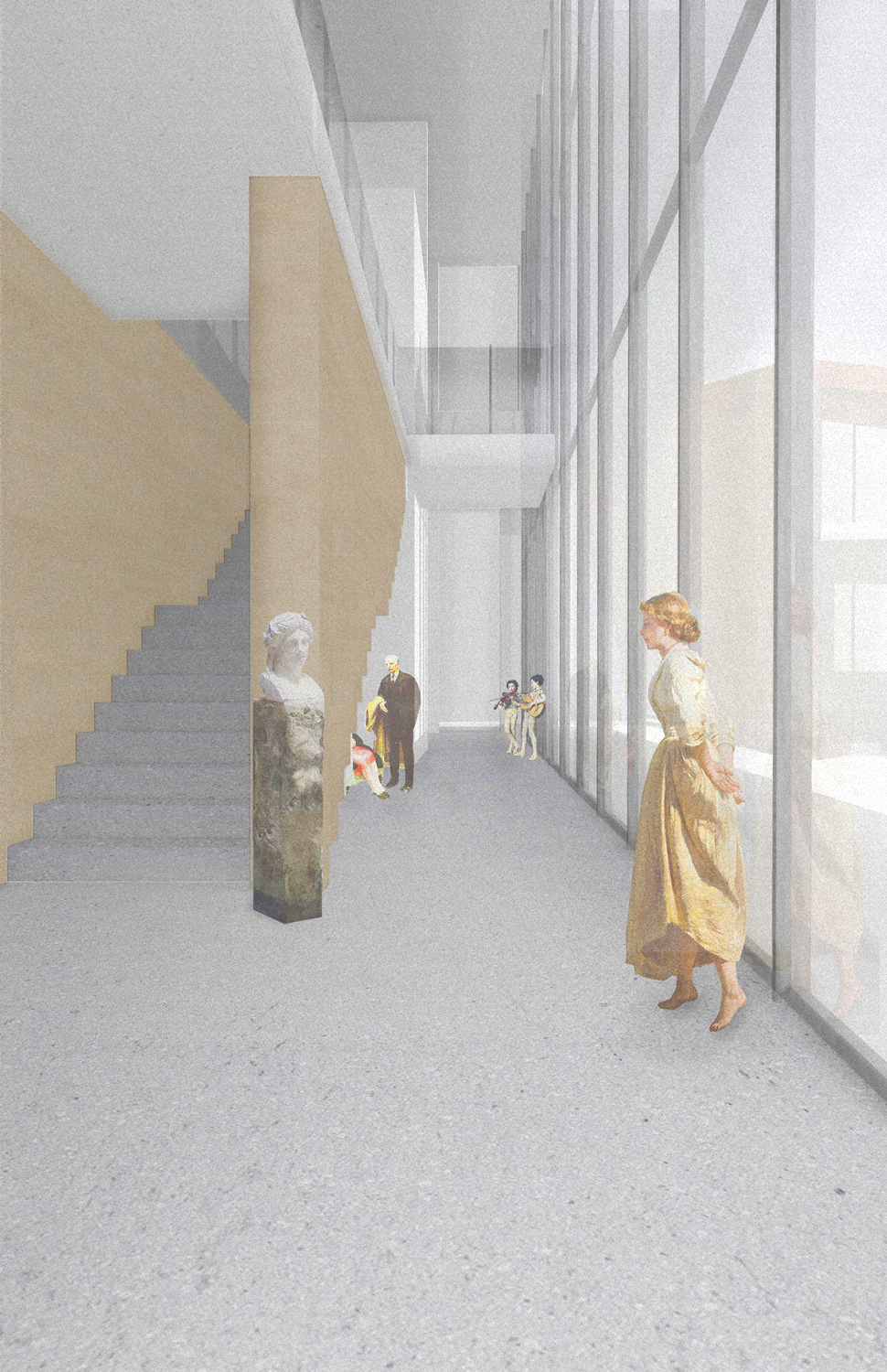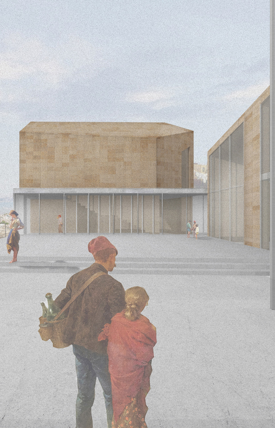 It is to say that, the cement mortar, which function is to keep together stones and bricks, is represented in the project by the open space that keeps together both the different buildings and the community that benefit from it. Unique will be the view from the big open plaza that will be created in the end of the itinerary through the project.