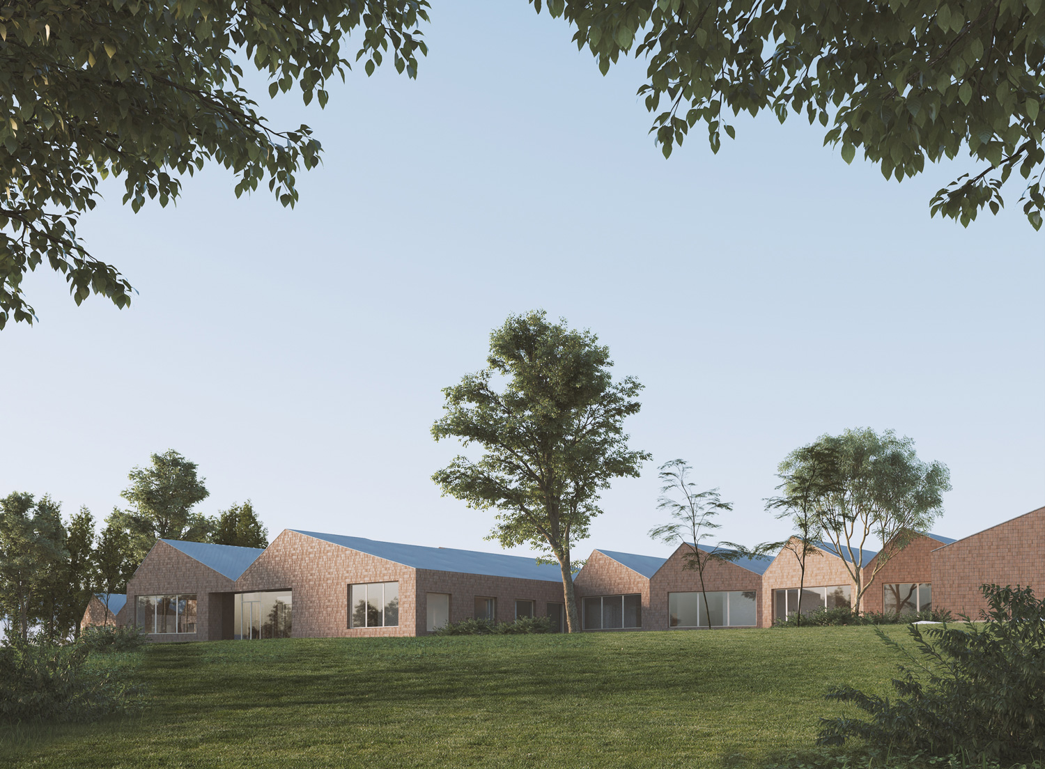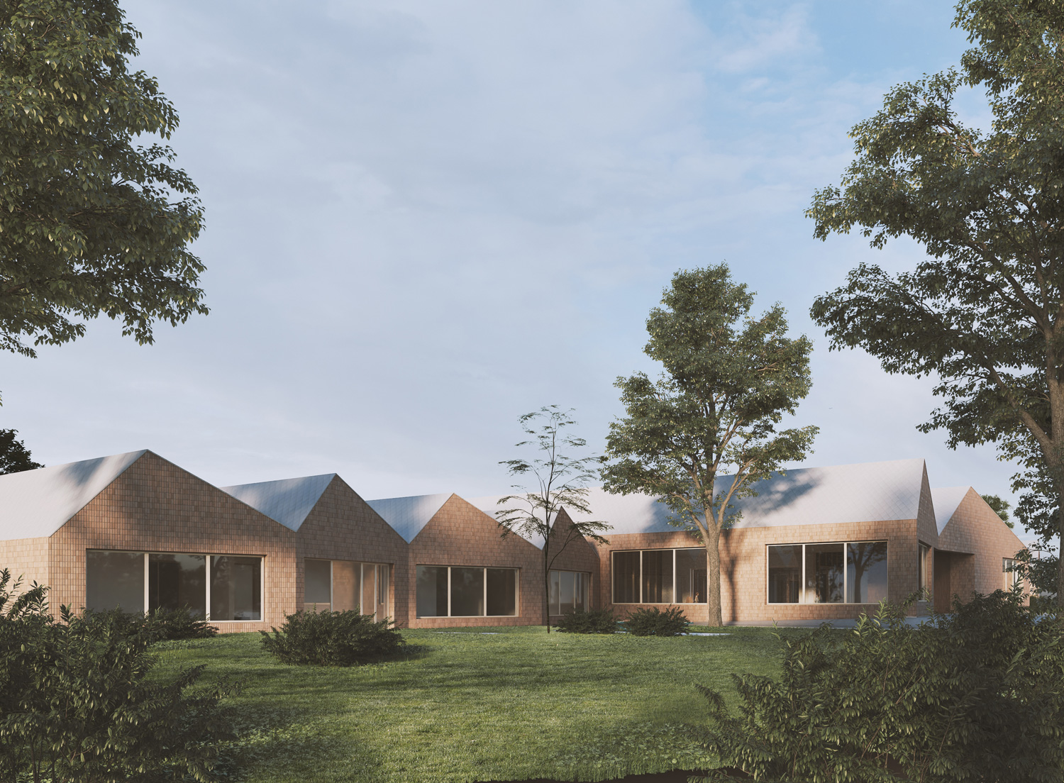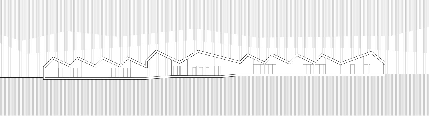 During the design process the idea was to create a one floor kindergarten building, which lies on a smaller slope. With surface rework the site can be suitable for the new building. The idea was to use a simple volume and multiply it to create the building form for the required spaces. The archetype form was transformed different way, by stretching and scaling. With the asymmetric roof and the tilted shorter sides, the goal was to create a various and playful appearance. Because the surrounding area mostly green areas, but in the future probably there will be built environment, this simple form can be a timeless and elegant and has it’s own character.