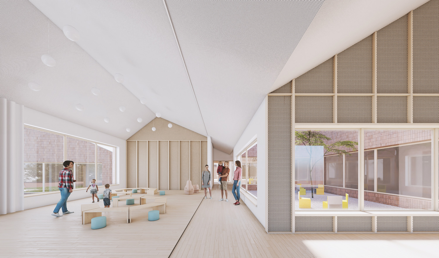 ☉ Kindergarten for Mati is a proposal by Tamás Csépke Formation Studio designed in 2024. It is located in Prishtina Kosovo in a park setting. Its scale is medium with a surface of 1.453 sqm an estimated budget of 1.850.000 € and a ratio of 1.273 €/sqm. Key material is ceramic.