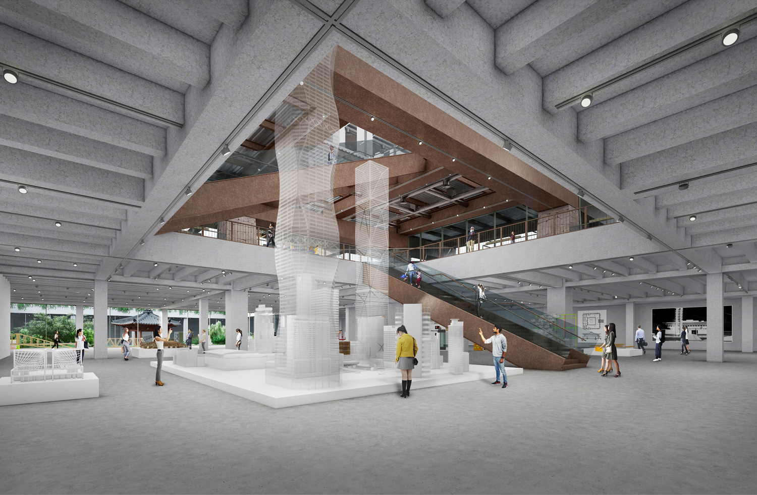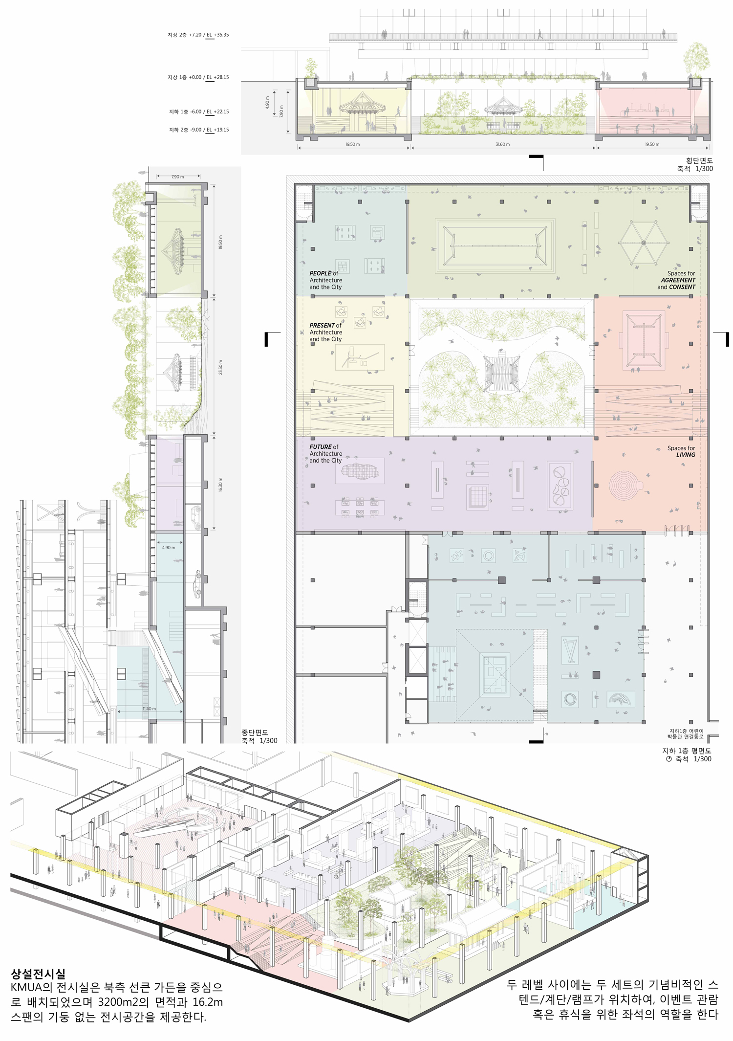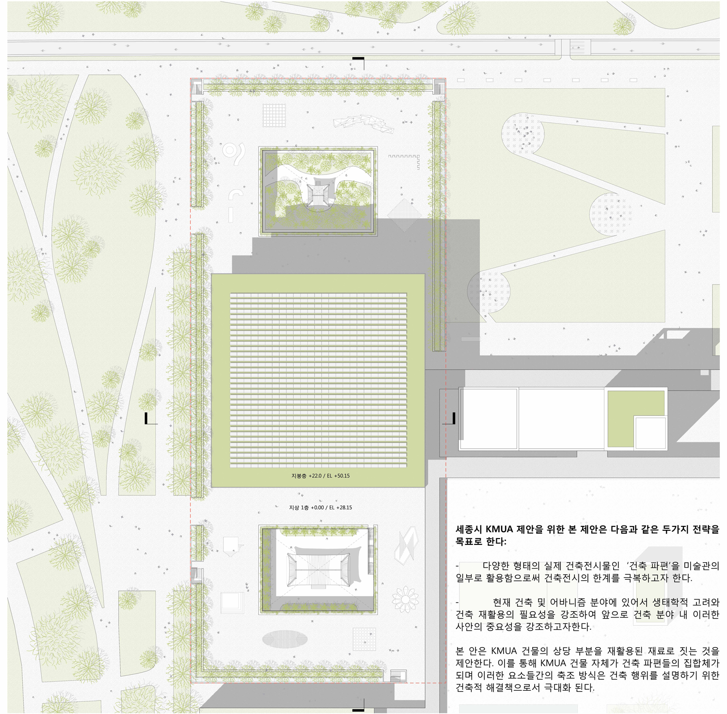 Our proposal is to use the construction of the KMUA both to exemplify the best practices in the industry in terms of ecological and environmental performances while paying tribute to an age which saw a failed national economy transformed into one of the thriving economies in the world through a process of radical transformation of cities. KMUA will reuse the steel girders of decommissioned infrastructure to build an oversized scaffolding to hold real fragments of architecture.