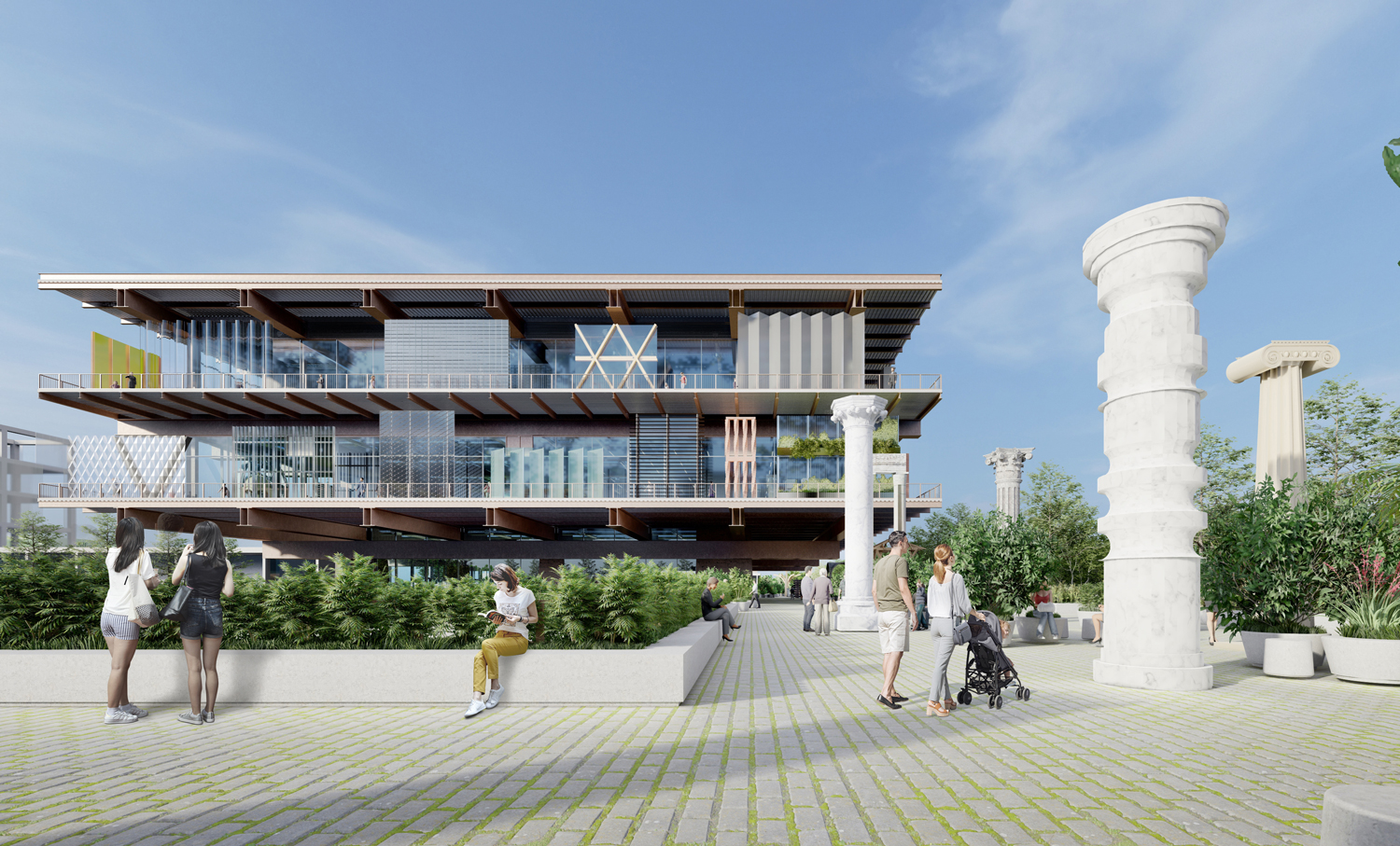 The KMUA building itself will be a collection of full-scale pieces of architecture and will remain always under construction. Designed like an infrastructural scaffolding it will sit on a walled treasure garden, where architectural fragments will be displayed between abundant trees and vegetation, in a picturesque fashion.