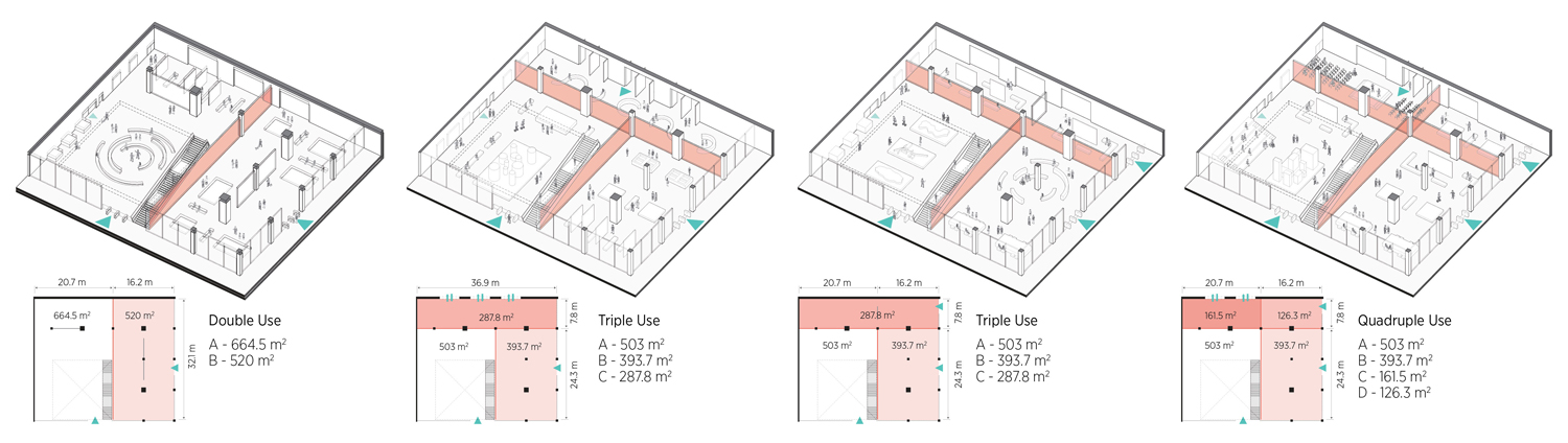 All ducting, piping and cabling will be exposed throughout, turning the building itself into a learning experience for the public. The building will follow strictly the Design for Disassembly doctrine, which ensures that the building’s material resources remain available at the end of its lifecycle. The mock-ups and specimens will then be installed on the shelves, as an expression of the museum as a composition of building fragments. The KMUA will remain permanently under construction.