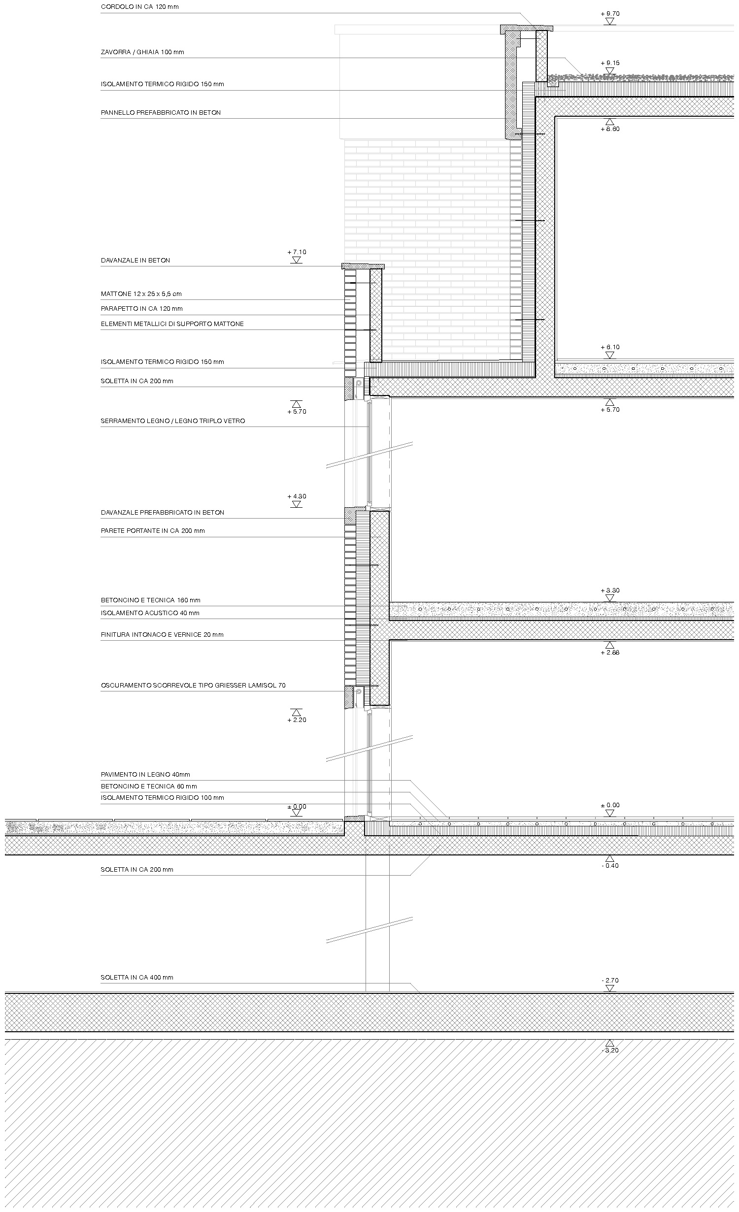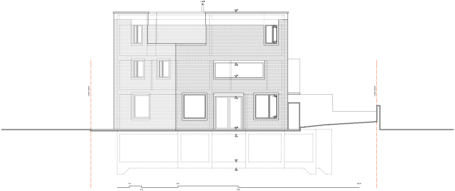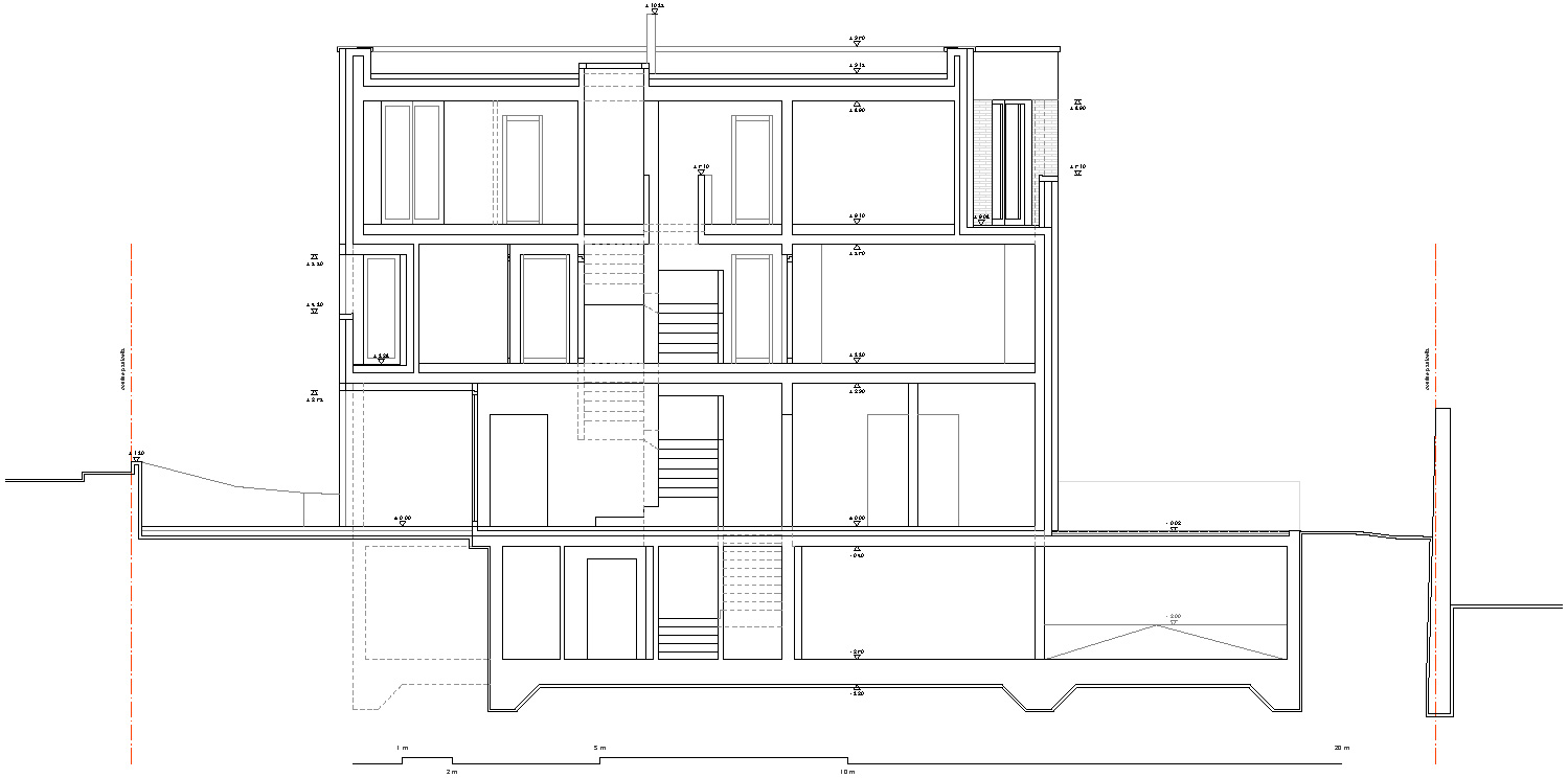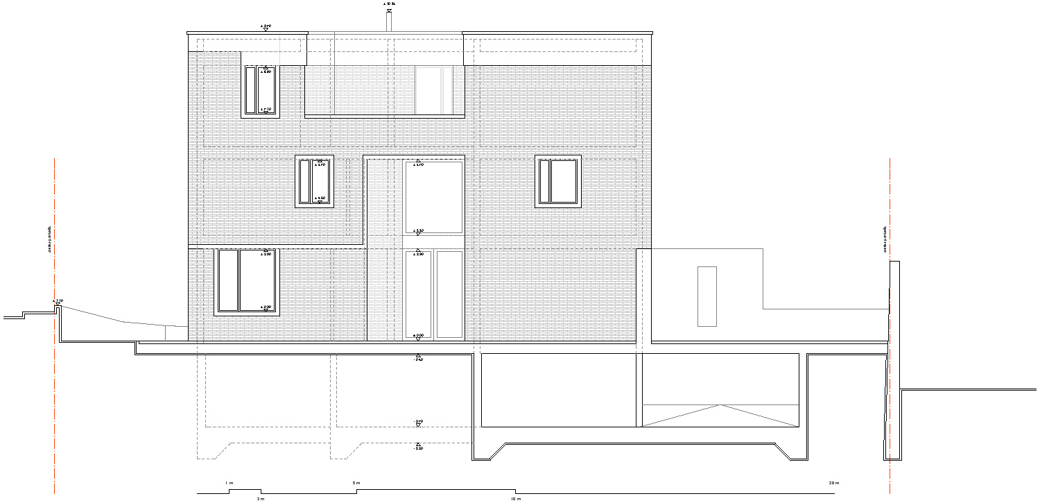 The buiding we thought It’s a space where young person who have familiar problems can live and learn a job before moving to be indipendent. The new house has three levels upper ground and one level underground which has technical and parking function. Clients asked a ‘ tower building ‘ but the program and also buildin laws do not allow more then 10.60 meters high. For this reason we decided to put the new tower on the highest point on the site, using the basement of the underground parking space as an extra level, able to slender the house, placed on it. Structurally, the building is placed on the wall and pillars of the parking. To increase the sense of verticality, we decided to create some different terraces on each level and especially on the second ( and last ) level where the volume is broken by the rhythm of the terraces.
