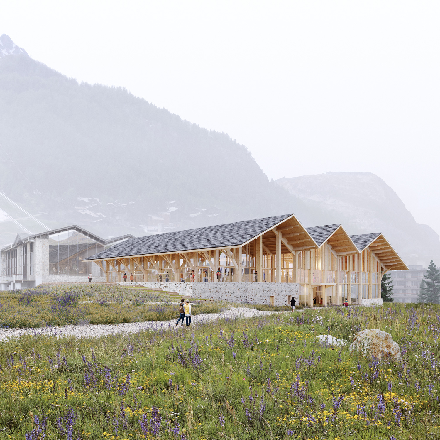 ☉ La Maison des Avalins is a winning proposal by Reiulf Ramstada and Odile + Guzy Architectes for Mairie de Val d’Isère designed in 2024. It is located in Val-d'Isère France in a mountain and urban setting. Its scale is medium with a surface of 3.200 sqm. Key materials are stone and wood. Jeudi Wang collaborated as visualizer.