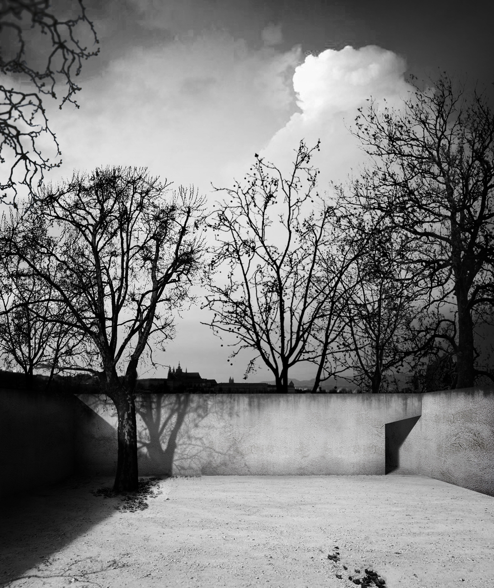 In the heart of Prague always so full of noise and tourists who wander from street to street and square to square, we find Strelecky Ostrov. An island. Not only in the physical sense, but also in the metaphorical one, because this place comes as a piece of quietness surrounded by confusion. In this way, assumes itself as the ideal place for host a space that aims to provide peace and quiet while dazzles by providing one of the best views over the city. Thus, trying not to disturb the natural harmony, the small building that embodies the chapel emerges as a stone, pure in its materiality, irregular in its form and transmitting the sensation that its spaces came from a process of subtraction in it. These spaces aim to interact with the users and provide them the ideal conditions to find their peace.
