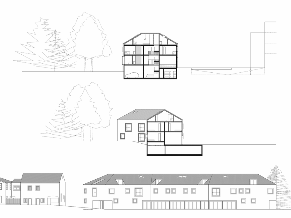 Nous cherchons que l’atmosphère réponde à celle d’un lieu chaleureux, intime, continu, sans barrières architectoniques, urbain, en essayant de concentrer les usages plus publiques dans le rez-de-chaussée qui est en connexion fluide avec le grand jardin et la forêt. Ceci devrait être un lieu ouvert et vitaliste, où l’on désire d’y aller, d’y aller pour vivre. «Les logements répondront par le nombre, le type et les loyers prévus à un besoin prépondérant d’intérêt général. Par intérêt général de la population, il faut entendre les loyers accessibles à la majorité de la population». Avec cette proposition nous voulons fournir une accesibilité totale. L’empaquetage qu’on fait du programme proposé cherche à concentrer dans un seul étage le programme d’usage collectif, le rez-de-chaussée, de tel façon qu’il soit transformé dans la zone la plus urbaine du projet, en munissant autonomie physique, sécurité psychique et un respect maximum pour l’intimité individuelle. Promouvoir la rencontre, faciliter au maximum l’accès des visiteurs et la contemplation des scènes. Les fortes limitations de la normative urbanistique conditionnent la position et la forme du projet. Pour optimiser le nombre de logements et répondre de manière appropriée aux critères de simplicité constructive et entretien, la stratégie principal qu’on propose est celle d’un seul volume longitudinal qui connecte transversalement avec la parcelle cedee pour les amenagements à travers de la séparation du mur mitoyen de l’immeuble voisin. De cette manière, on n’interrompt aucun pas et on favorise les connexions.