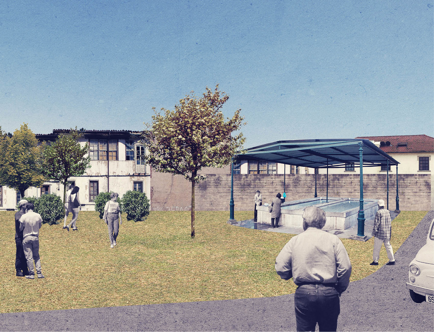 The proposal is based on a romantic idea: while hiding behind the fan, a woman earns on an aura of mystery and becomes the center of attentions. The irony of the gesture leads to the curiosity of the voyeur. This is the metaphor that we want to apply to the wash house in Guimarães: by hiding the object behind a “white curtain”, we seek to arouse the curiosity of the population.