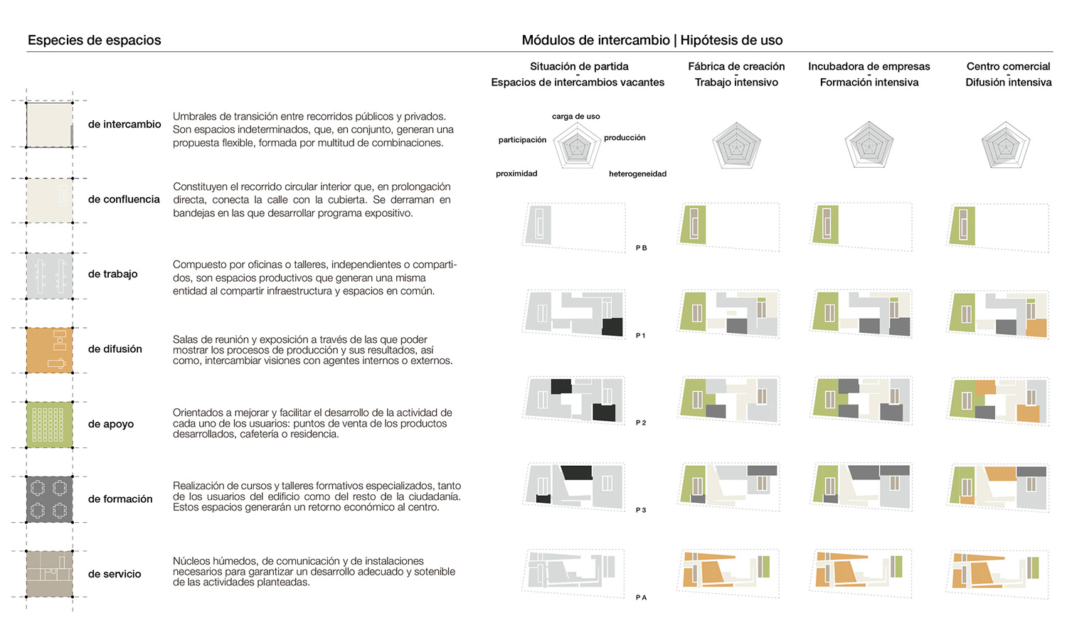 Cabe preguntarse sobre la idoneidad o no de dotar de una obra totalmente controlada y acabada o si, por el contrario, deben preverse espacios que puedan funcionar de manera abierta. El tipo de proyecto que se propone requiere implementar un cierto grado de indefinición. Se quiere dejar hueco a la improvisación, a la apertura hacia posibles cambios de función y a la adaptación de distintos usos en el tiempo. Se proponen unas bases que favorezcan los experimentos programáticos a través del diálogo y el debate entre los agentes intervinientes, siempre huyendo de los espacios limitados a usos concretos, a las rígidas normativas sobre actividad y a una imposición de programas idealizados que puedan mostrarse ineficaces en un futuro cercano.