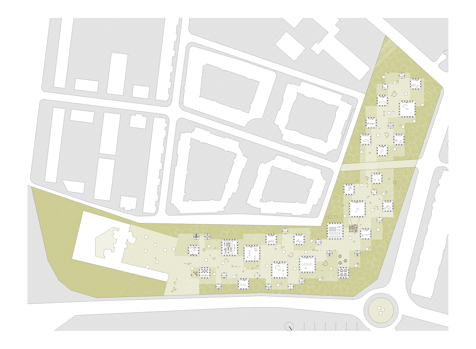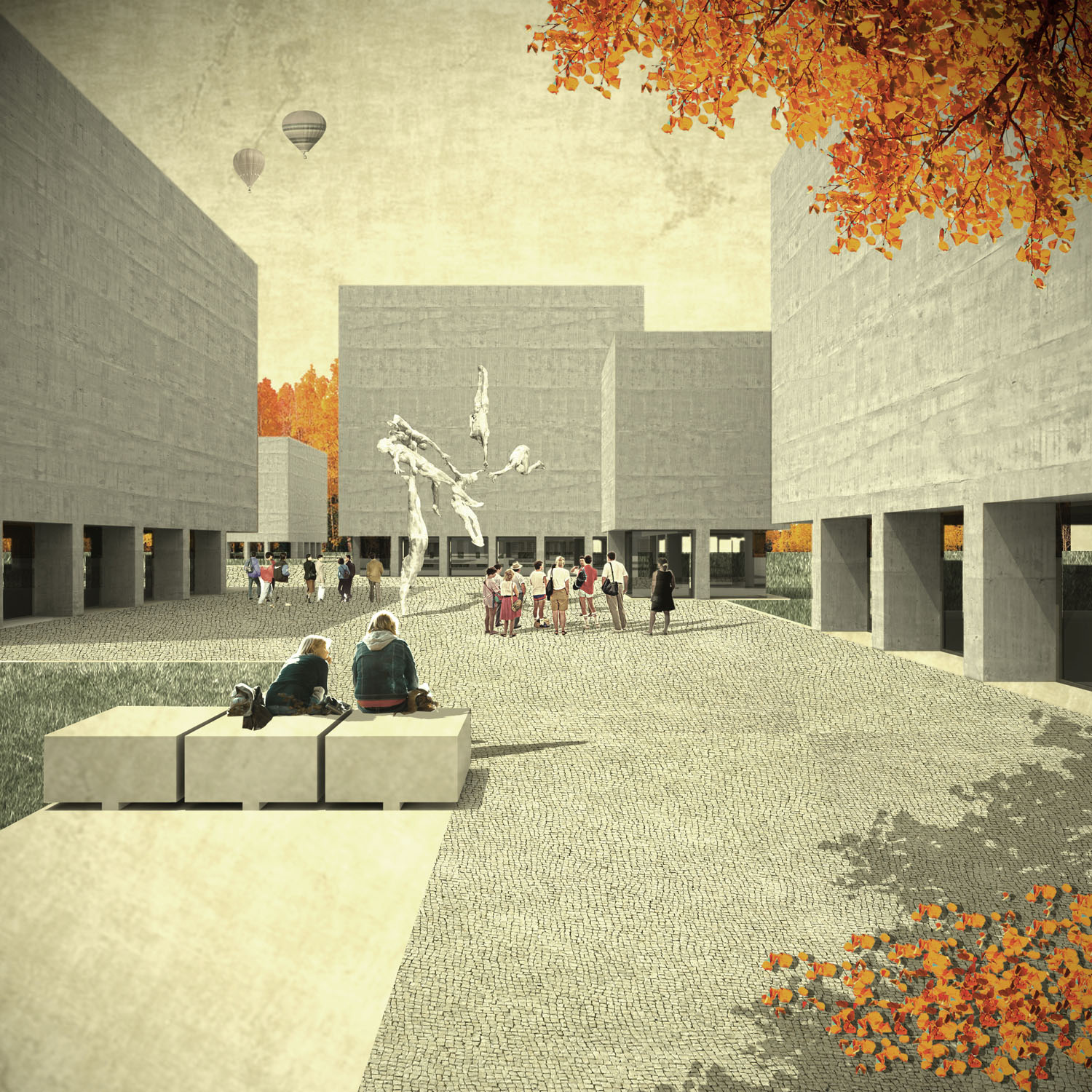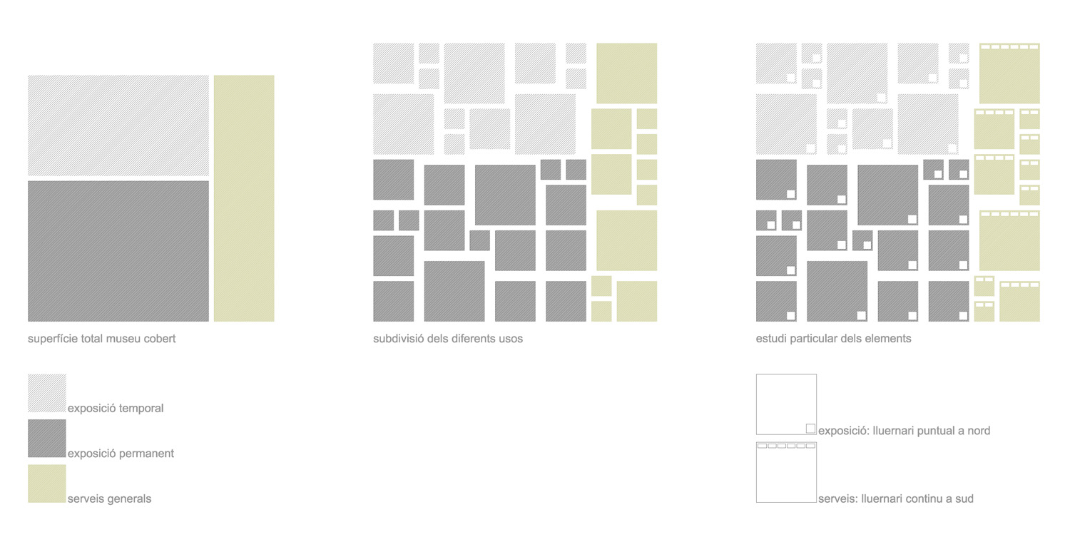 La disposición de los nuevos volúmenes genera interespacios entre ellos: plazas, plazoletas y rincones, agradables espacios al aire libre donde realizar múltiples actividades relacionadas con el museo: talleres de arte para familias, proyecciones de documentales las noches de verano, ciclos de conferencias sobre escultura, tomar un café en la terraza del bar, etc.