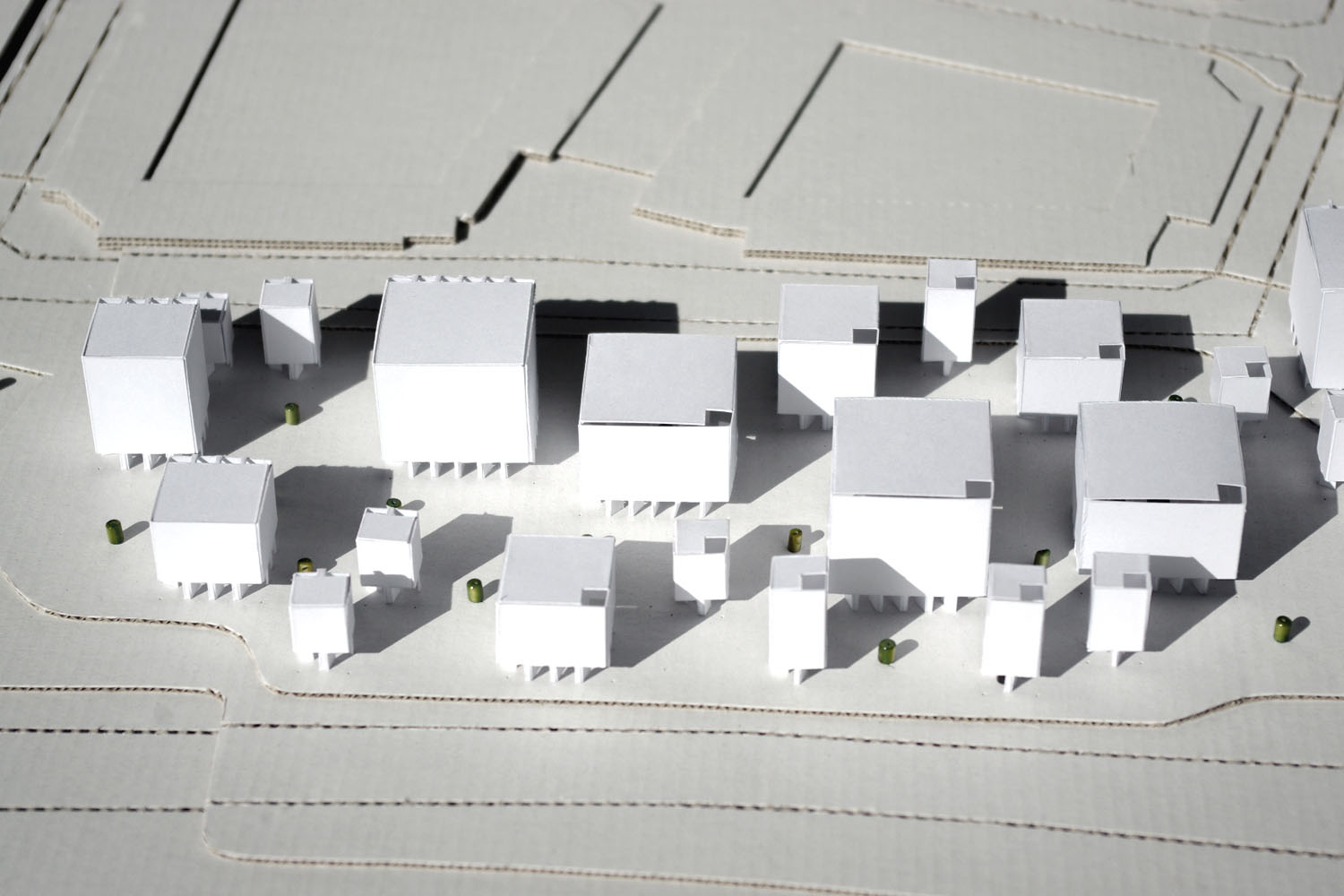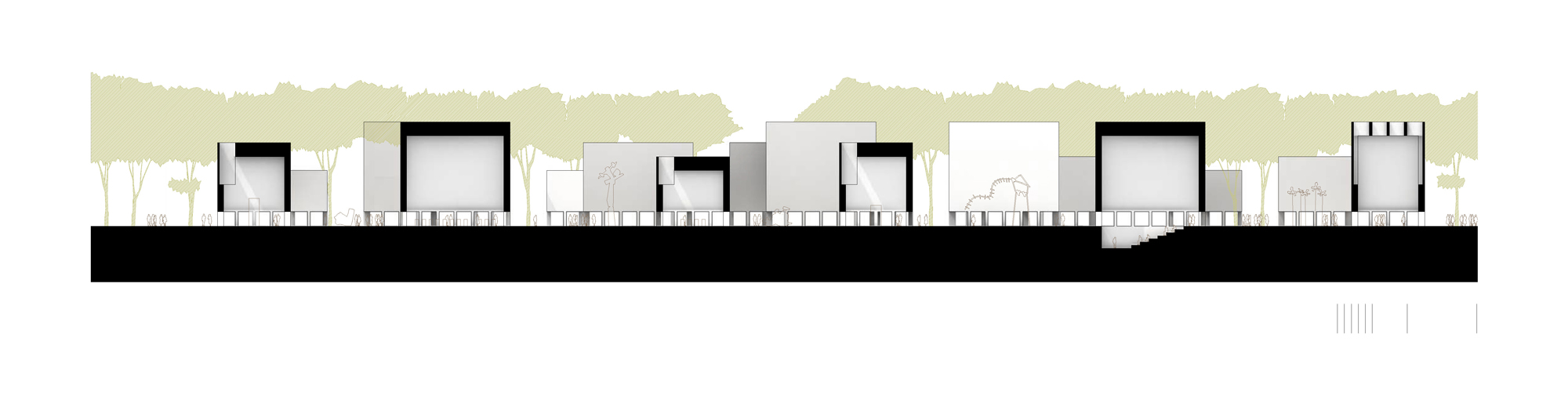 Las nuevas estructuras son las que dan respuesta al programa requerido. Los nuevos joyeros actúan como contenedores de arte. Cada uno de ellos es de geometría prismática, sencilla y neutra, pero su incansable repetición da lugar a un conjunto que es capaz de generar un nuevo paisaje artificial.