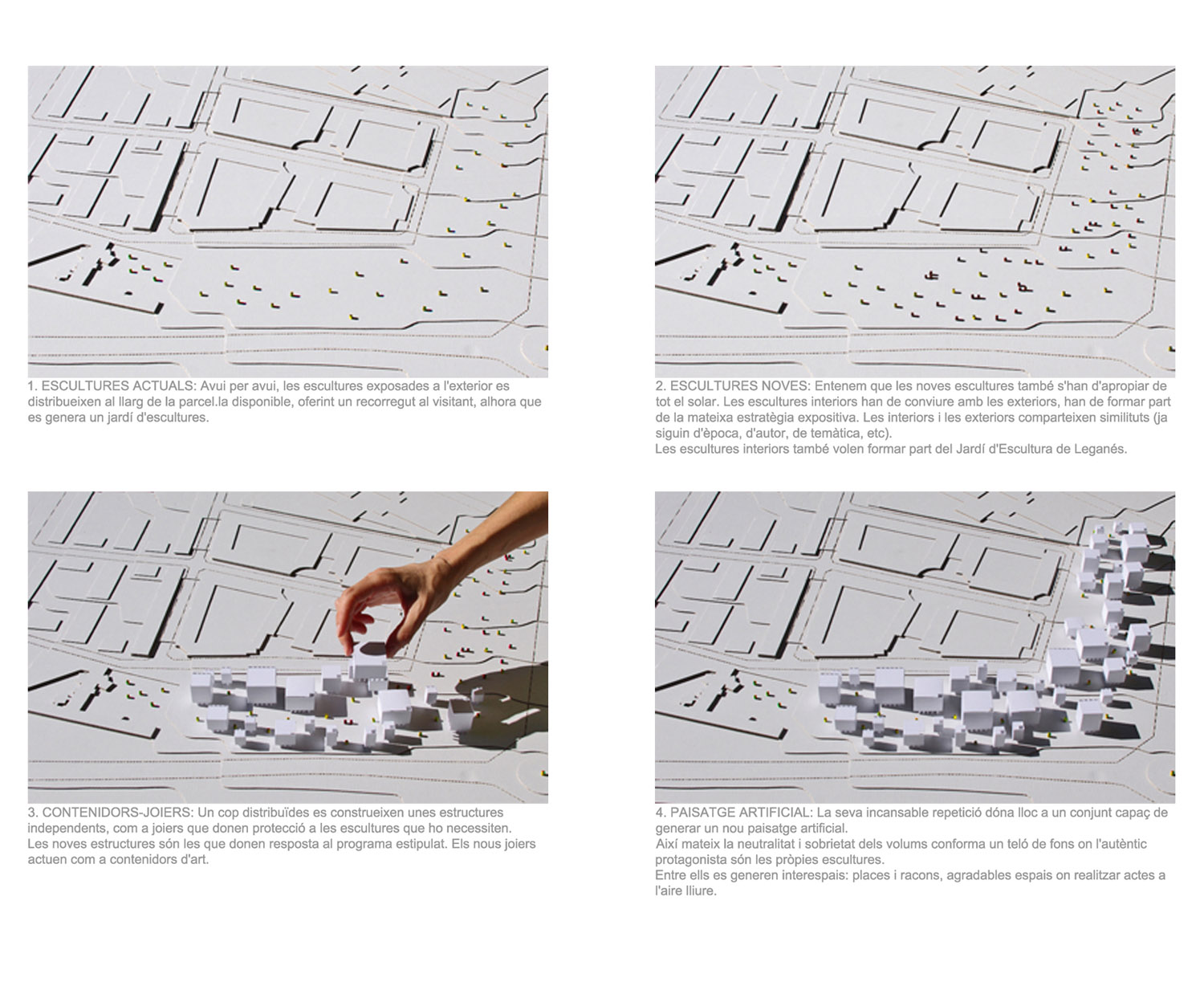 Existe una característica que, de momento, distingue al Museo de Escultura de Leganés de otros museos: el de Leganés es un museo al aire libre. Nuestra propuesta mantiene esta característica diferenciadora. Se propone un museo al aire libre.
