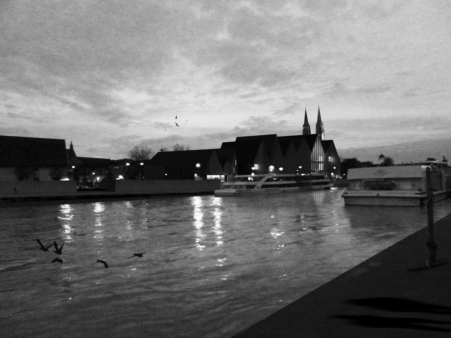 ☉ Neubau Museum der Bayerischen Geschichte is a proposal by Jorge Ruiz Boluda Jorge López and Paul Dieterlen for Bavarian History Museum Regensburg designed in 2013. It is located in Regensburg Germany in a riverside and old town setting. Its scale is medium. The concept of sloped roof is explored. Review the 3 proposals for the same competition.