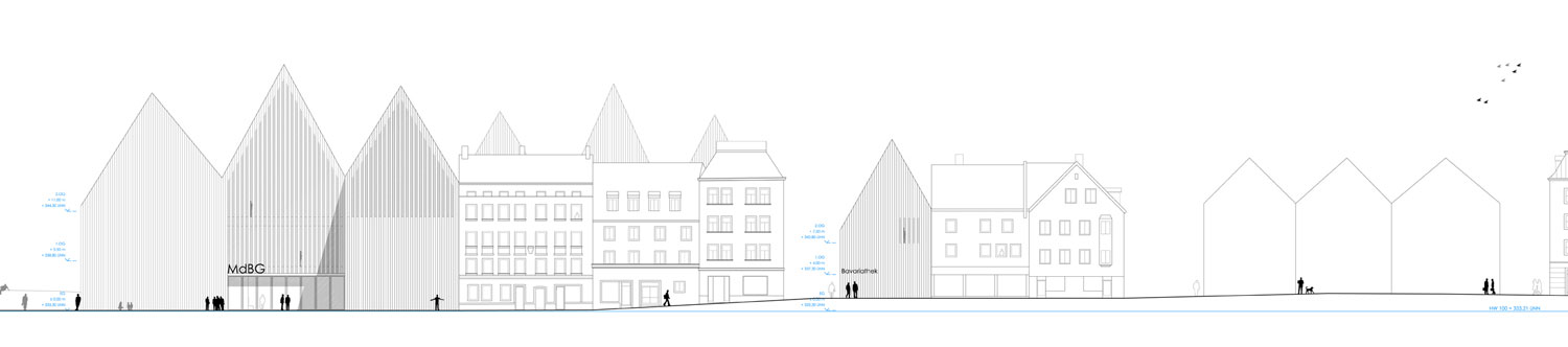Con el nuevo edificio para el Museo de la Historia de Baviera pretendemos potenciar la idea de identidad, mezclando paisaje urbano y paisaje natural. El edificio se muestra como una «caja con un contenido valioso», el contenido es la memoria de Baviera. La caja se presenta con un juego de cubiertas a dos aguas, que se integran en el skyline de la ciudad y dialoga con ella.