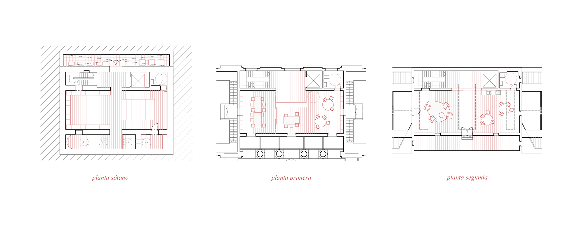 El centro de documentación, situado en el ala derecha, y el nuevo espacio expositivo, en el ala izquierda, ofrecerán una estrategia común de intervención. Sabiendo de la complejidad de la actuación, se pretende mantener el carácter diáfano del espacio albergando una estructura modular muy esbelta que será el soporte y la matriz para organizar de manera coherente el nuevo programa funcional del museo.